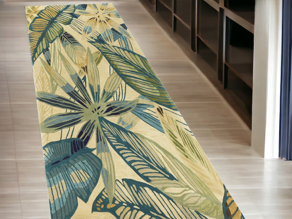 Add some artistry to your room with this 3-foot x 5-foot ivory teal and green wool tropical botanical hand tufted area rug. Crafted by skilled artisans, this hand tufted rug is genuine and unique. No two will be exactly alike. Rugs are a great way to showcase your style, hide imperfections, warm your home and reduce noise. This smaller sized, contemporary styled rug is just what you need for your walkway, bedside, in front of door, cabinet, refrigerator, or chair. 42.00-inch h x 66.00-inch w x 0.50-inch d.