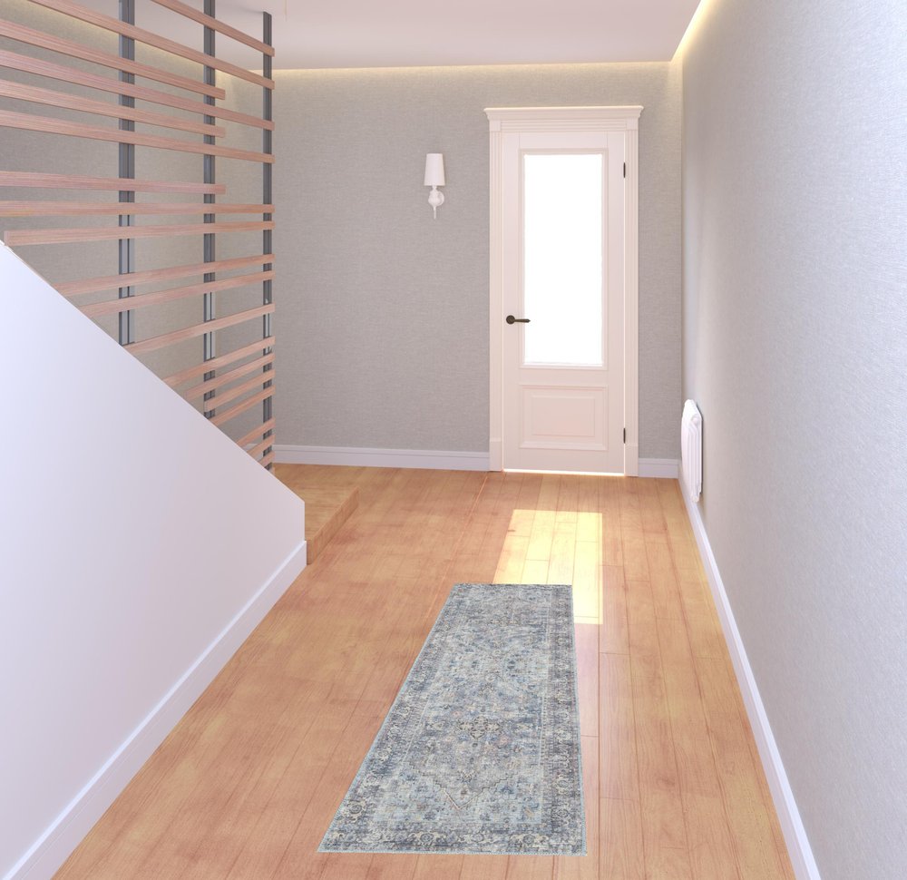 Set an inviting tone in your space with this 2' x 6' light grey and blue oriental power loom distressed washable runner rug. This runner shaped rug features a oriental design in light grey and blue to give it visual interest. A classic shape marries with good looking design for your space Made in Turkey, this rug offers high quality combined with good looking designer sensibilities. Place this area rug against a hardwood or tile floor and it will enliven your living space with style and sophistication. .28" H x 24.00" W x 72.00" D