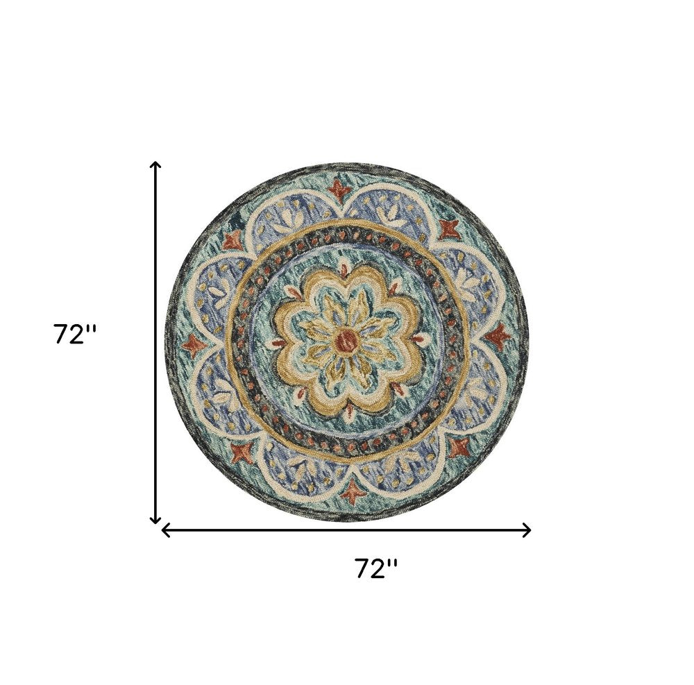 6' X 6' Blue Round Wool Floral Hand Tufted Area Rug