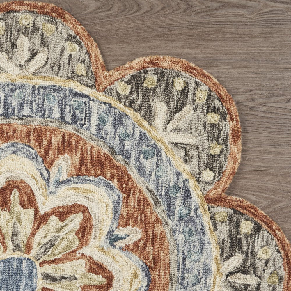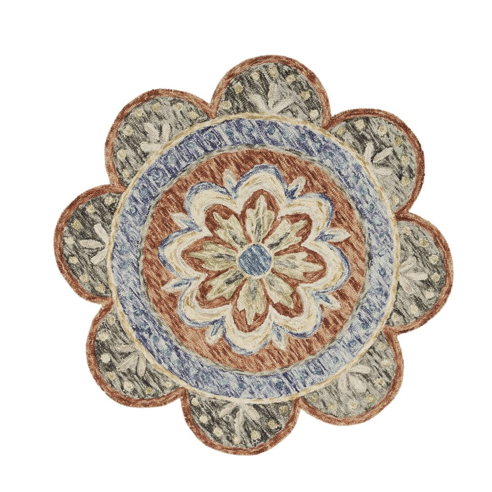 Add some artistry to your room with this 4-foot orange and red wool floral hand tufted round rug. Crafted by skilled artisans, this hand tufted rug is genuine and unique. No two will be exactly alike. Rugs are a great way to showcase your style, hide imperfections, warm your home and reduce noise. This smaller sized, traditional styled rug is just what you need for your walkway, bedside, in front of door, cabinet, refrigerator, or chair. 48-inch h x 48-inch w x 0.5-inch d.