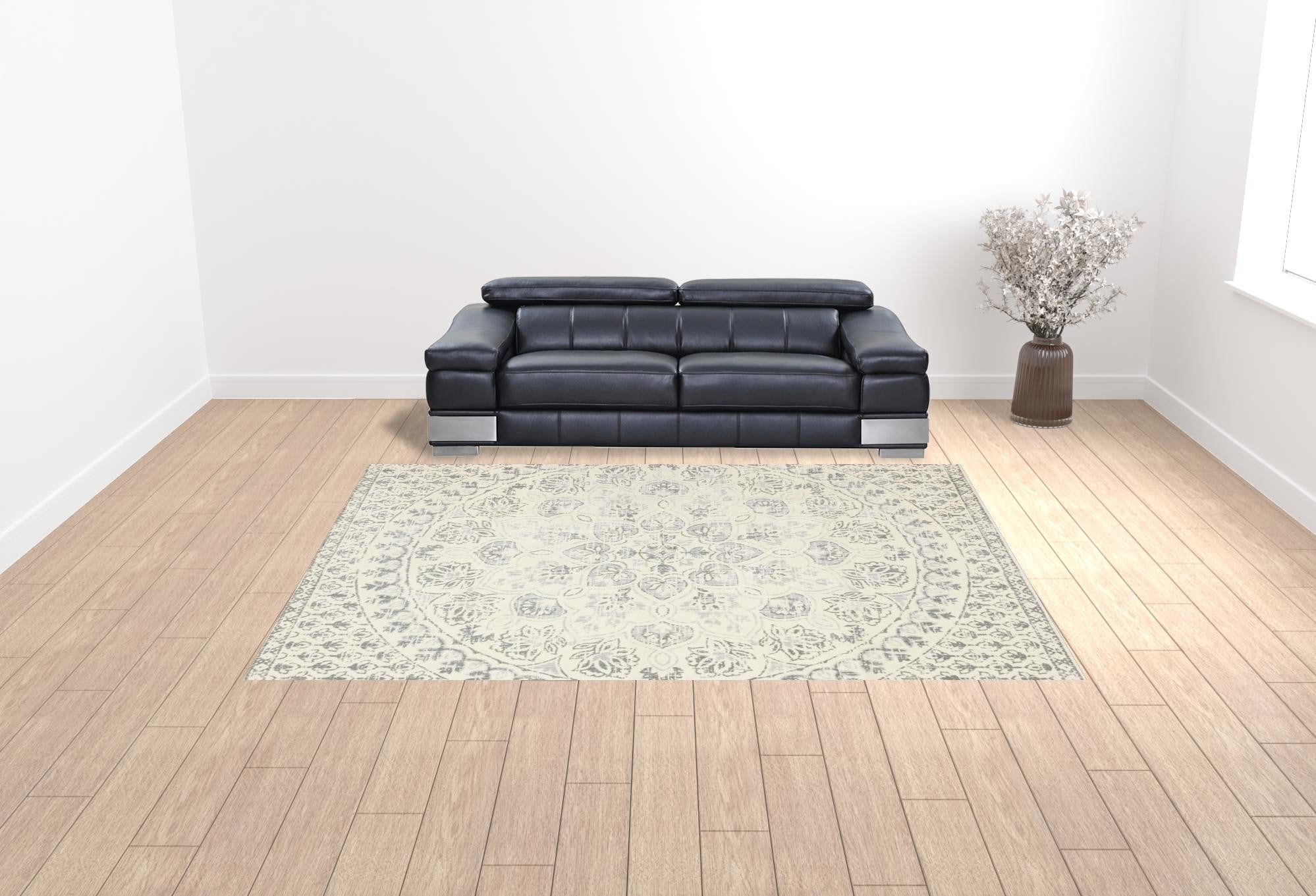 4' X 6' Ivory And Grey Floral Power Loom Stain Resistant Area Rug