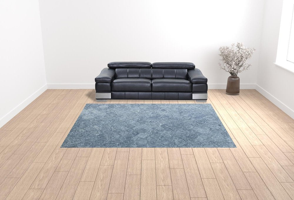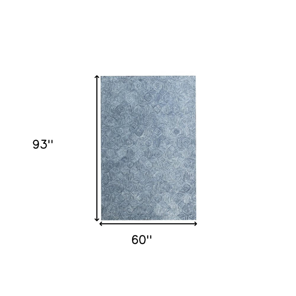 5' X 7' Blue Wool Geometric Hand Tufted Area Rug