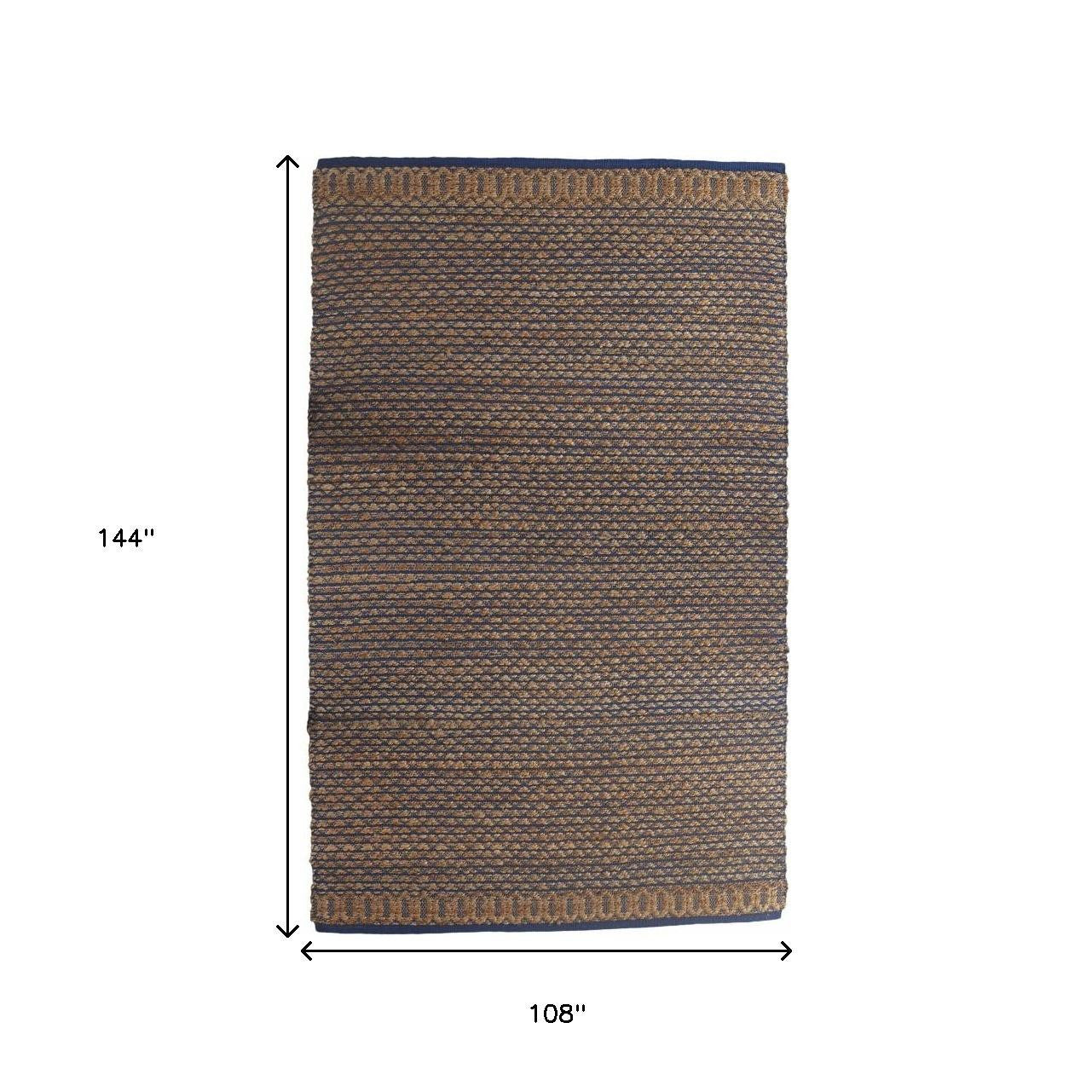 The classic tone and texture of this Tan and Blue Detailed Lattice Area Rug will instantly make your space look and feel more inviting with an earthy essence. The finely detailed navy blue lattice over a tan background gives the piece a rich bohemian vibe, while the decorative edges complete the look. The fusion of jute and cotton in the making increases the durability of this piece against wear and tear while being water-resistant and easy to clean. This rug is constructed in a low pile for a smooth and neat surface texture, allowing it to be an excellent solution for high-traffic areas indoors. The bold color palette of this area rug will complement a wide variety of interior styles without being too loud. 93” x 117” x 0.4”
