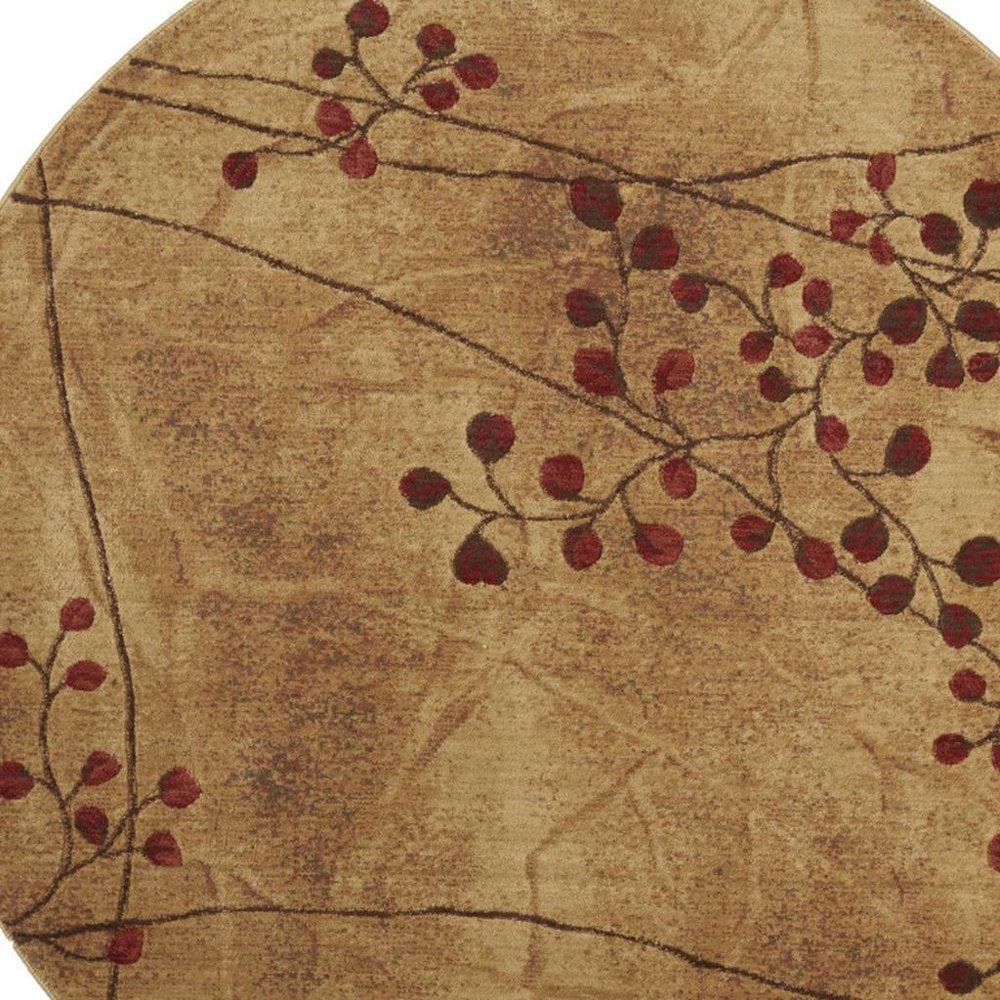 Add some artistry to your room with this 6' brown round floral power loom area rug. This geometric round shaped rug features a floral pattern in brown that combines a good looking print with a unique and updated shape. The mix of shape, color, and design gives this rug refreshing visual interest. Place this area rug against a hardwood or tile floor and it will enliven your living space with style and sophistication. .50" H x 66" W x 66" D