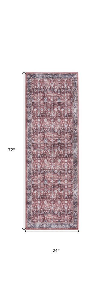 6' Red and Ivory Oriental Power Loom Distressed Washable Non Skid Runner Rug