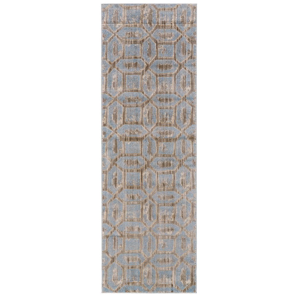 Add great coloration and comfortable texture to your space with this 8' blue taupe and ivory floral distressed stain resistant runner rug. This runner shaped rug features a floral design in blue taupe and ivory to give it visual interest. A classic shape marries with good looking design for your space Made in Turkey, this rug offers high quality combined with good looking designer sensibilities. Ideal for spaces with kids and pets, this rug is stain resistant to help repel stains and spilled liquids. Place this area rug against a hardwood or tile floor and it will enliven your living space with style and sophistication. 0.41" H x 31" W x 96" D