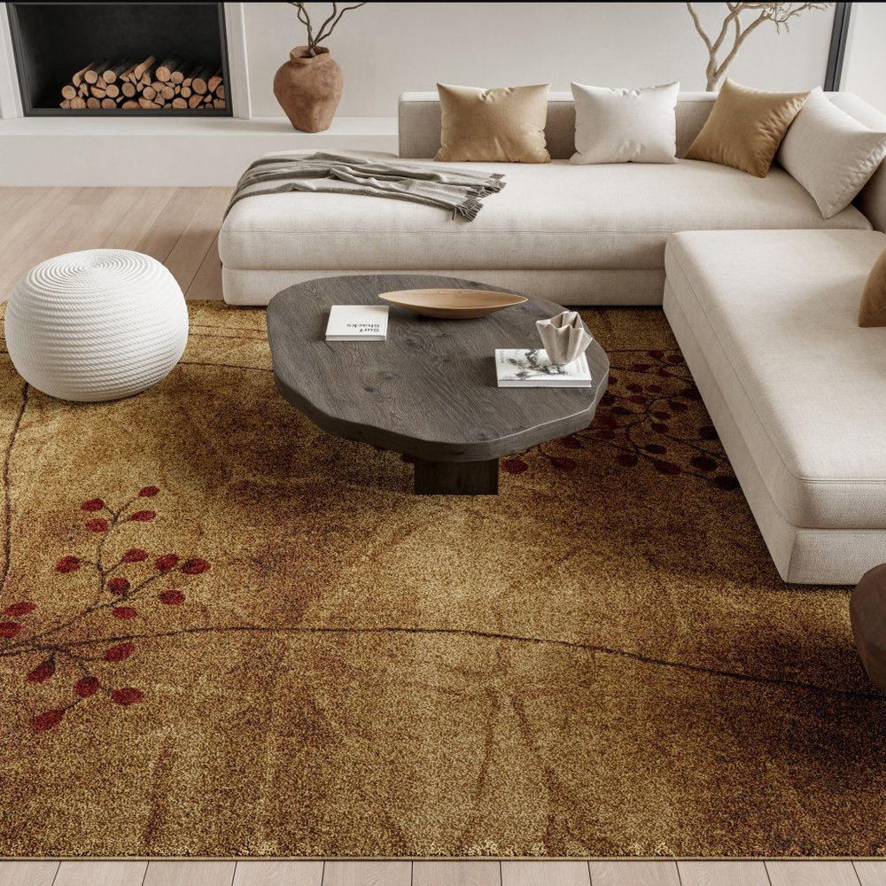 Enhance the aesthetic appeal of your space with this 8-foot x 11-foot floral power loom area rug featuring a captivating brown floral design. Crafted with machine-made precision and a durable latex-backed construction, this polyester rug offers both style and functionality. The non-skid backing ensures stability, while the recommended rug pad enhances longevity. For maintenance, simply vacuum without a beater bar/rotating brush to keep this contemporary brown rug looking its best. 93-inch H x 130-inch W x 0.5-inch D