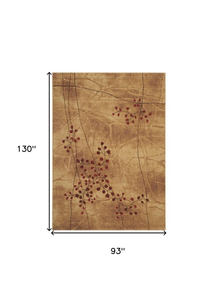 8' X 11' Brown Floral Power Loom Non Skid Area Rug