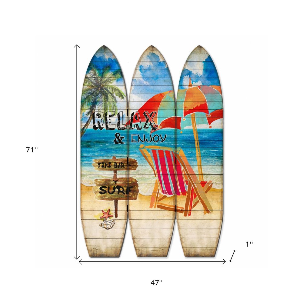 Enhance your living space with this elegant 71-inch solid wood folding room divider featuring a beautiful blue and beige color combination. Crafted in a contemporary style, this three-panel screen adds a touch of sophistication to any room effortlessly blending functionality with aesthetic appeal. The durable solid wood material ensures longevity while creating a visual partition within your space. Perfect for dividing rooms or adding a decorative element, this versatile piece offers both privacy and style. Whether used to section off areas in a studio apartment or to create a cozy reading nook in a larger room, this folding room divider is a must-have addition to your home decor collection. 71-inch h x 47-inch w x 1-inch d