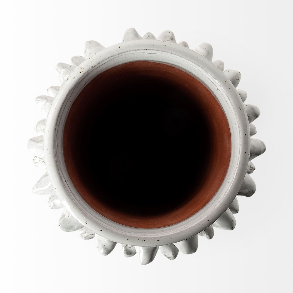 Elevate your space with the contemporary allure of this 11-inch gray abstract cylinder ceramic table vase. The sleek cylindrical shape brings a modern touch to your decor effortlessly. Crafted from high-quality ceramic, this vase boasts a sophisticated gray hue that complements a variety of color schemes. Its abstract design adds a stylish element to any room, making it a striking centerpiece on any table or shelf. The versatile style allows you to display it on its own or with your favorite flower arrangement for a personalized touch. Embrace the minimalistic charm of this elegant ceramic vase and infuse a touch of modern sophistication to your home. 11-inch h x 6-inch w x 6-inch d.