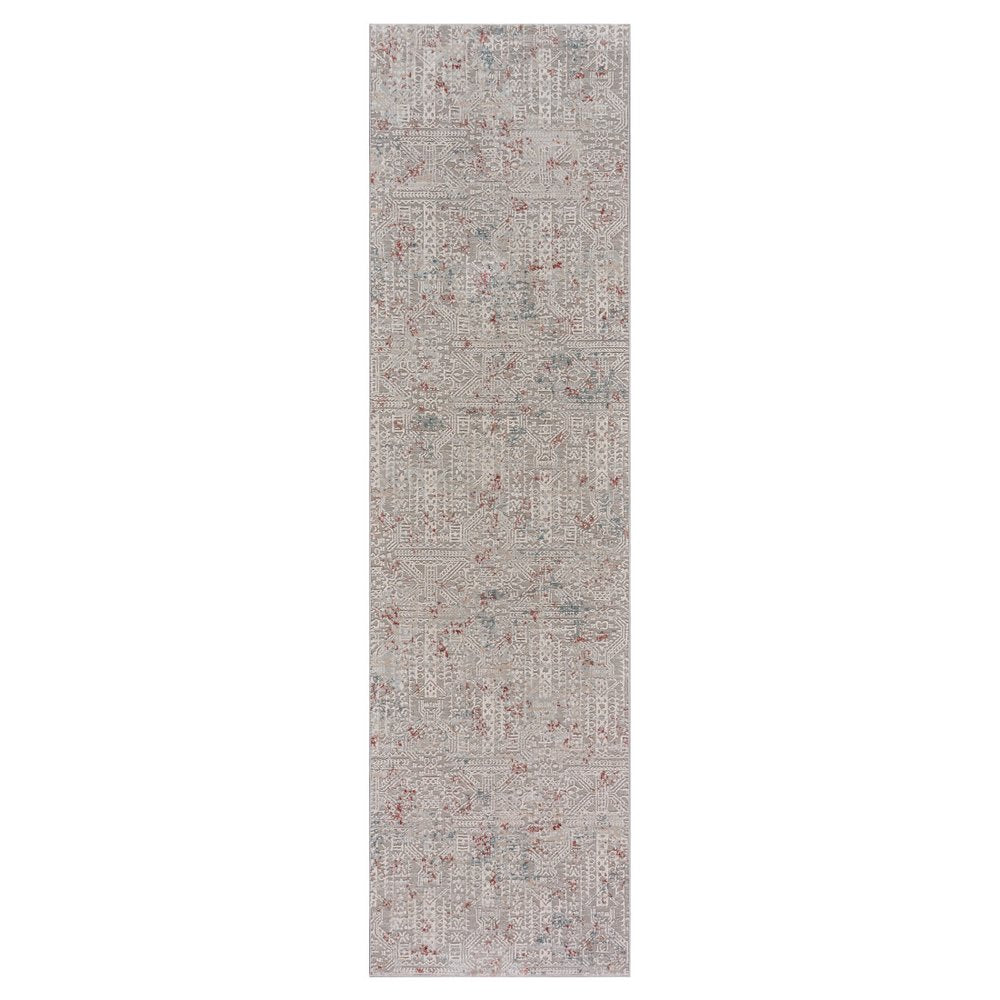 Add great coloration and comfortable texture to your space with this 8' gray ivory slate blue and wine red geometric distressed runner rug. This runner shaped rug features a geometric design in gray ivory slate blue and wine red to give it visual interest. A classic shape marries with good looking design for your space Made in Turkey, this rug offers high quality combined with good looking designer sensibilities. Ideal for spaces with kids and pets, this rug is stain resistant to help repel stains and spilled liquids. Place this area rug against a hardwood or tile floor and it will enliven your living space with style and sophistication. 0.2" H x 24" W x 96" D