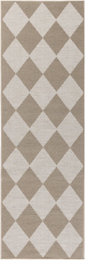 Add some artistry to your room with this 8-foot natural and ivory geometric power loom washable non skid runner rug. This runner shaped rug features a geometric design in natural and ivory to give it visual interest. A classic shape marries with good looking design for your space Area Rugs help to give warmth and sense of home to your space. .25-inch H x 27.00-inch W x 90.00-inch D