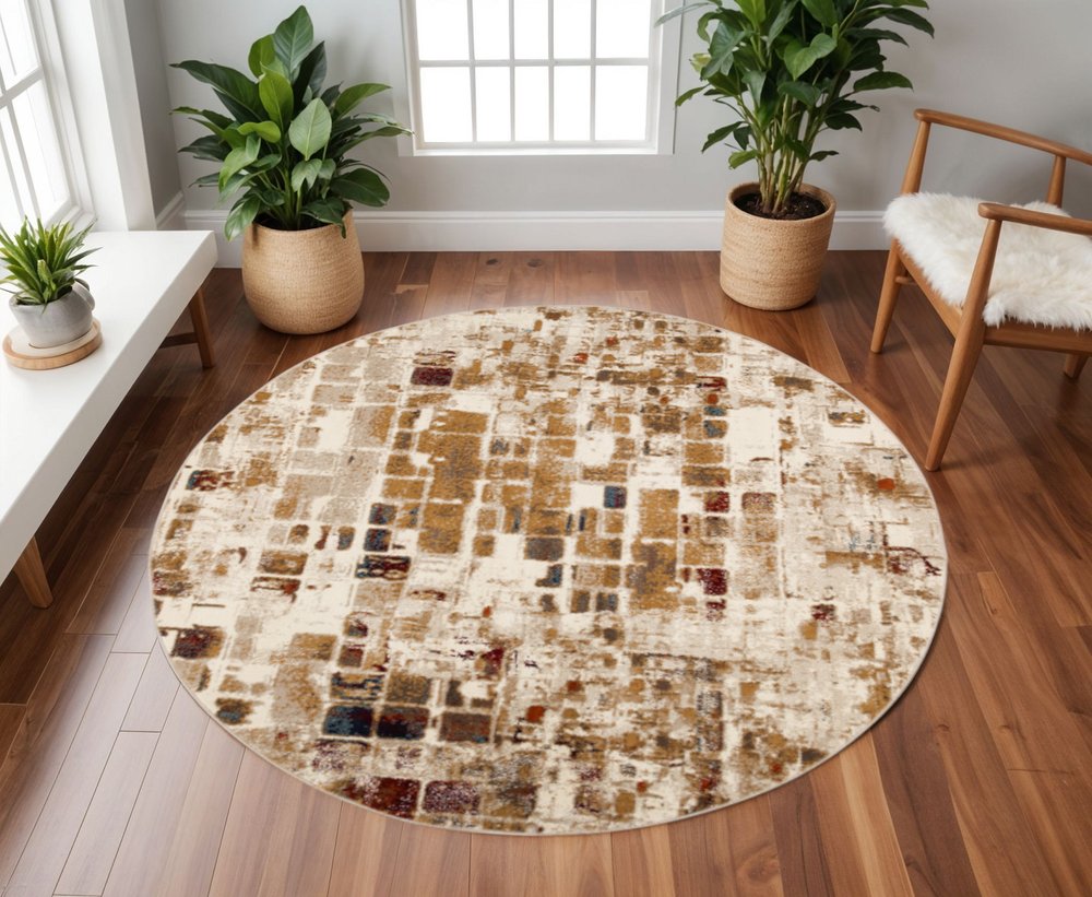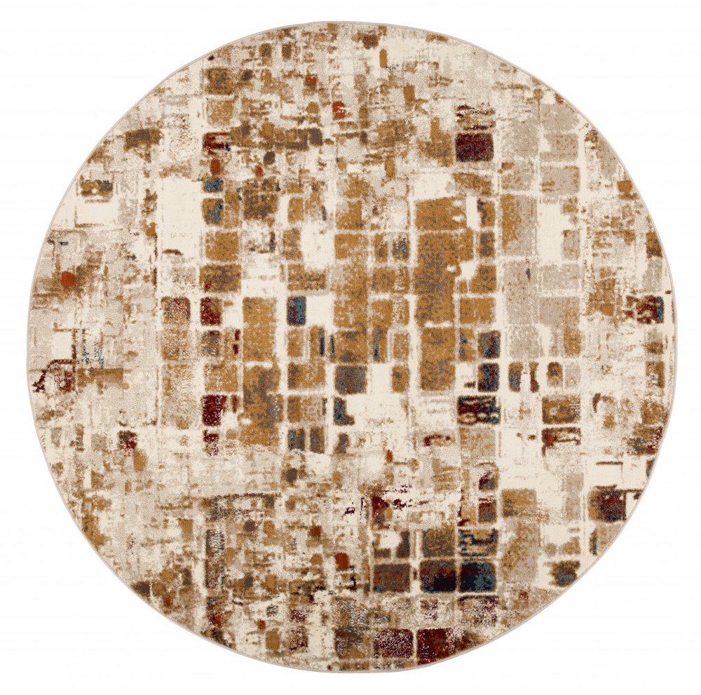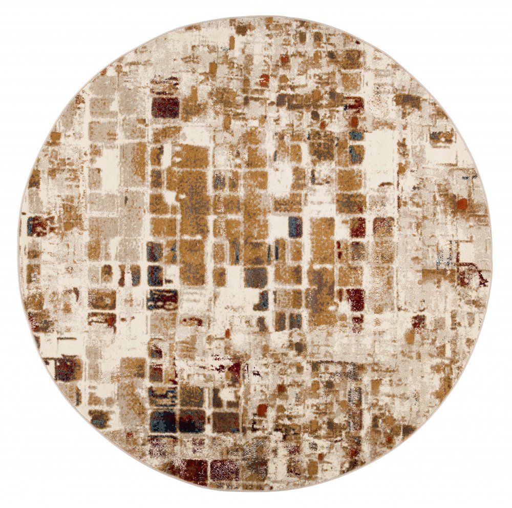 Set an inviting tone in your space with this 8-foot natural and brown abstract distressed round rug. Ideal for spaces with kids and pets, this rug is stain resistant to help repel dirt and spilled liquids. Built to last, this rug crafted from polypropylene fibers is known for its durability and long lasting appeal. Rugs are a great way to showcase your style, hide imperfections, warm your home and reduce noise. This larger sized, contemporary styled rug is ready to create a focal point or statement piece in your room. 91.00-inch h x 91.00-inch w x 0.50-inch d.