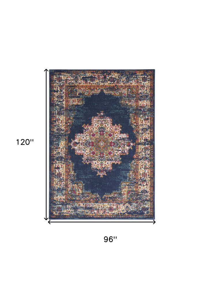 8' X 10' Navy Blue Floral Power Loom Distressed Area Rug