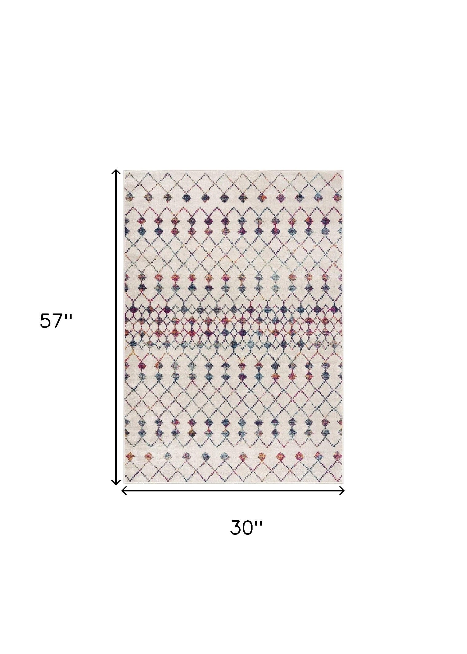 Add great coloration and comfortable texture to your space with this 10' cream ikat area rug. This rectangle shaped rug features a ikat design in cream to give it visual interest. A classic shape marries with good looking design for your space The coloring of this rug adds a delightfully neutral tone to your home and will easily match with most any decor. Made in Turkey, this rug offers high quality combined with good looking designer sensibilities. Place this area rug against a hardwood or tile floor and it will enliven your living space with style and sophistication. 0.4" H x 27" W x 120" D