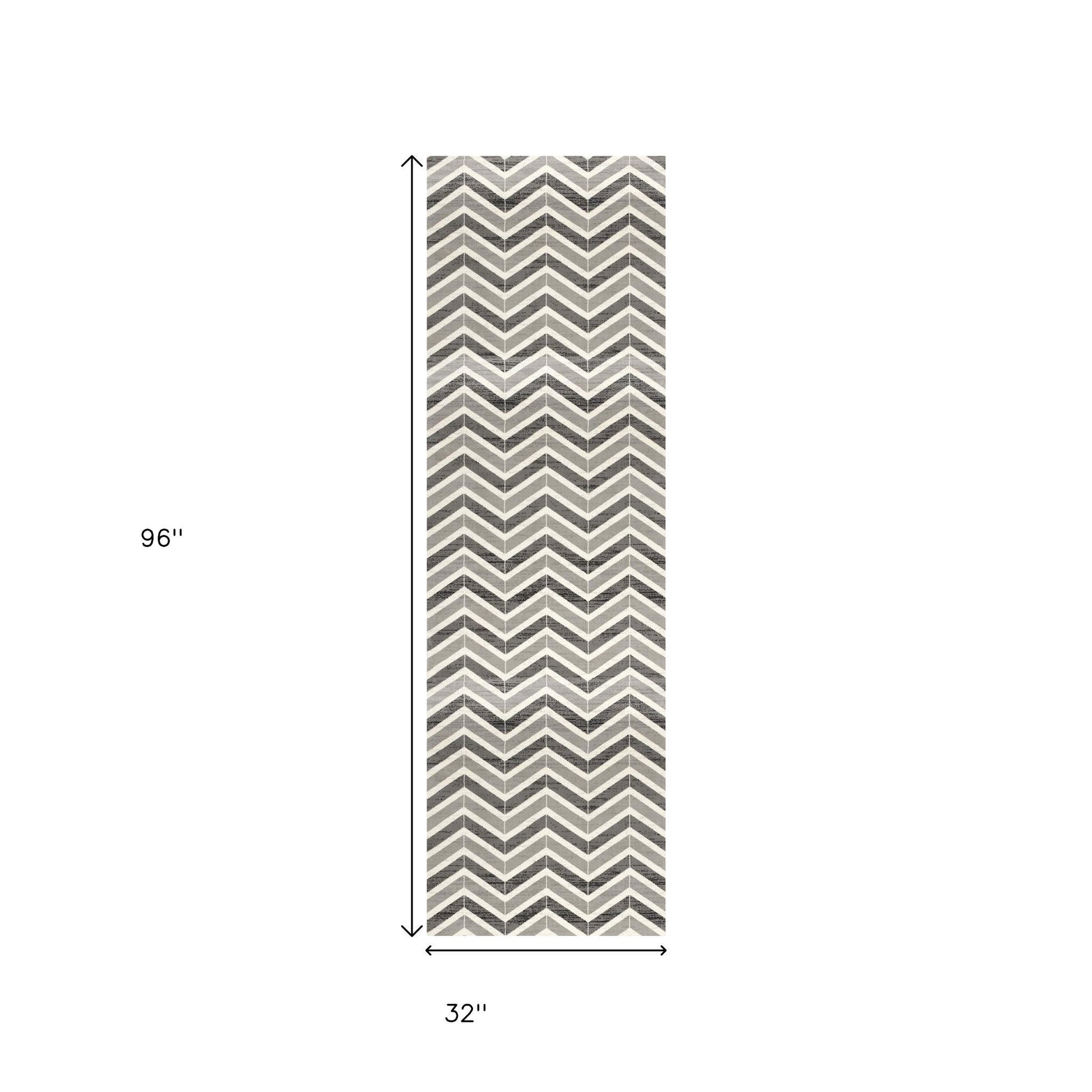 2' X 4' Gray And Ivory Chevron Distressed Area Rug