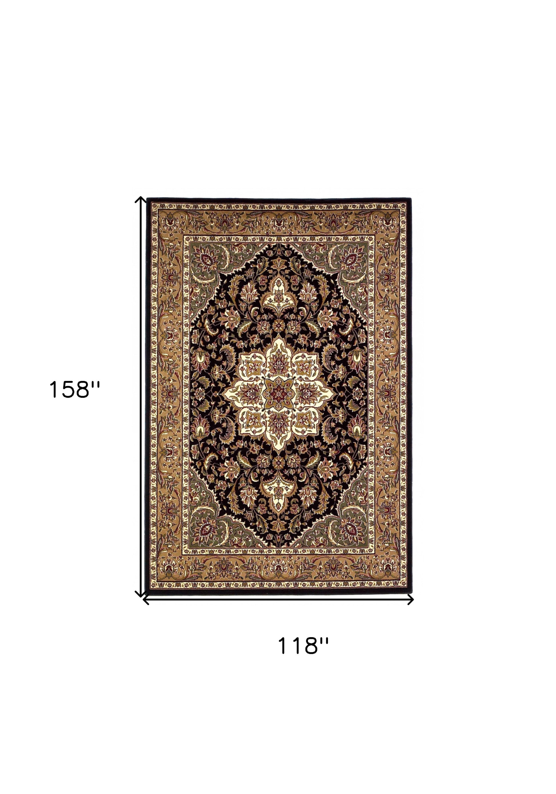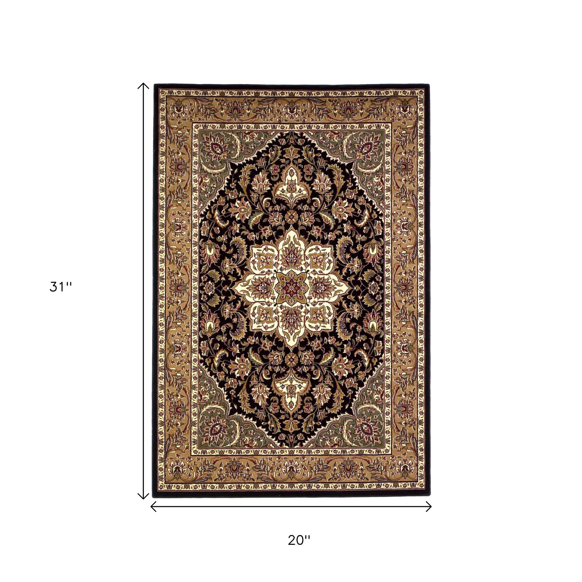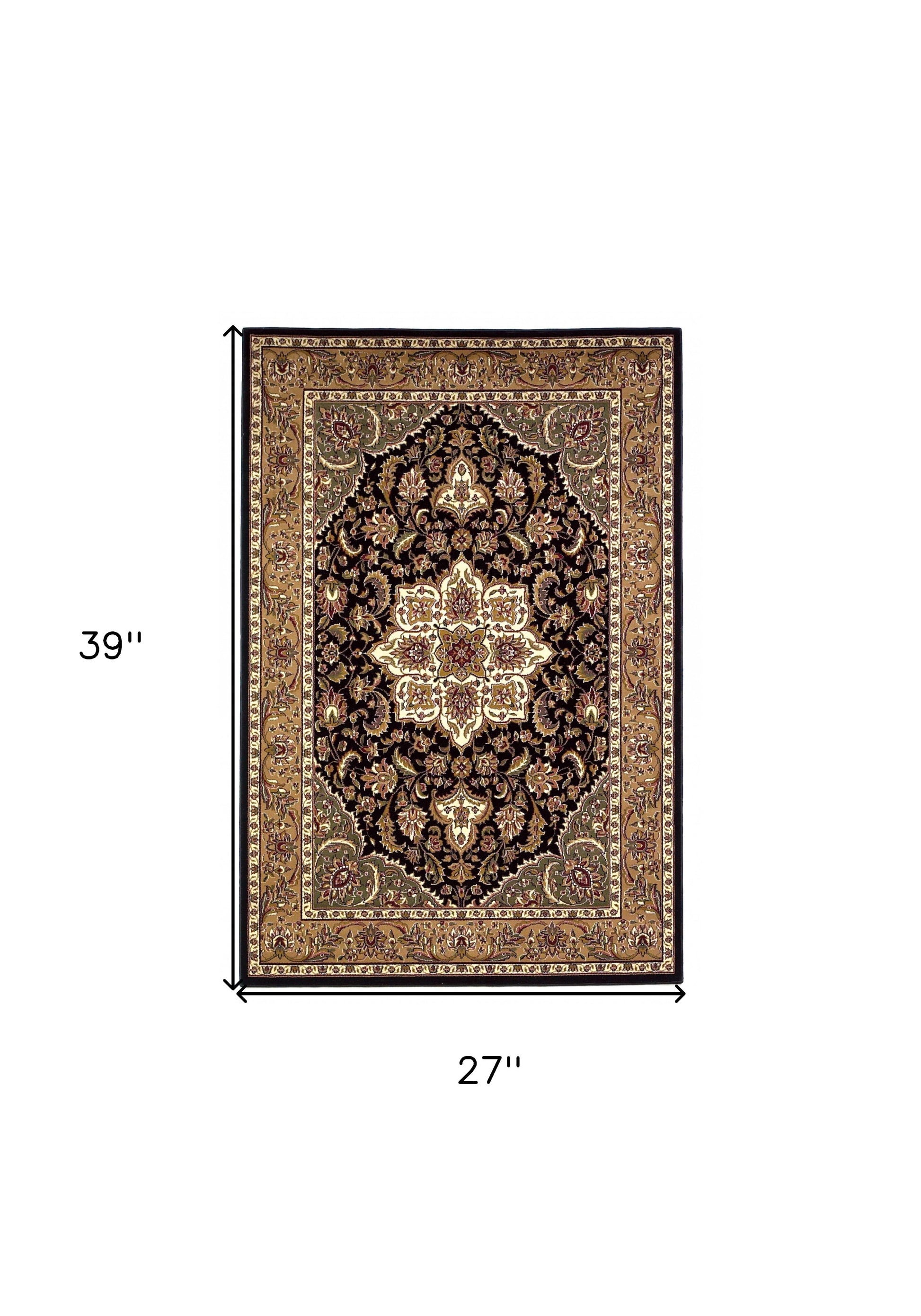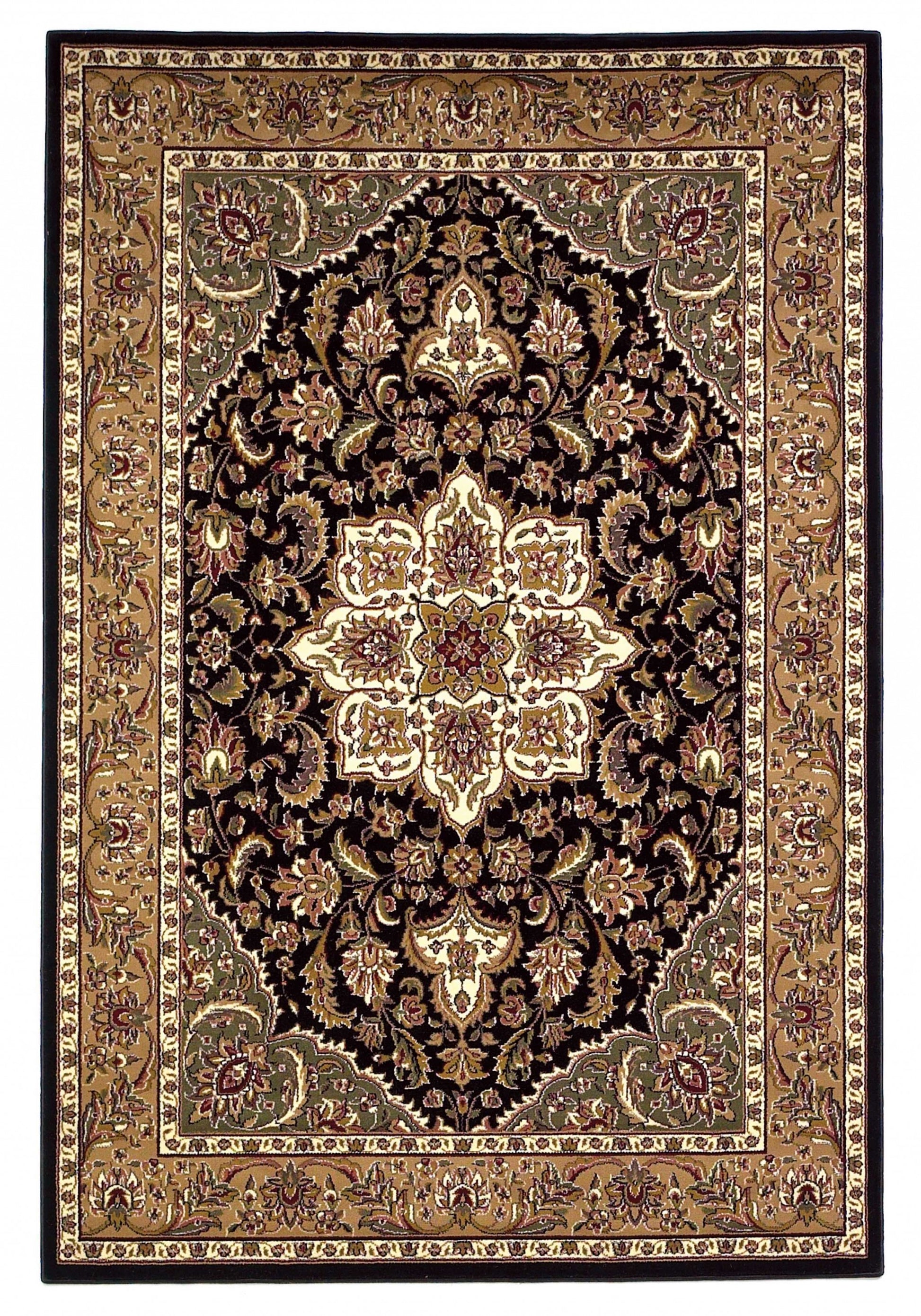 Set an inviting tone in your space with this 3-foot x 5-foot black and beige floral medallion area rug. Ideal for spaces with kids and pets, this rug is stain resistant to help repel dirt and spilled liquids. Built to last, this rug crafted from polypropylene fibers is known for its durability and long lasting appeal. Rugs are a great way to showcase your style, hide imperfections, warm your home and reduce noise. This smaller sized, traditional styled rug is just what you need for your walkway, bedside, in front of door, cabinet, refrigerator, or chair. 39-inch h x 59-inch w x 0.5-inch d.
