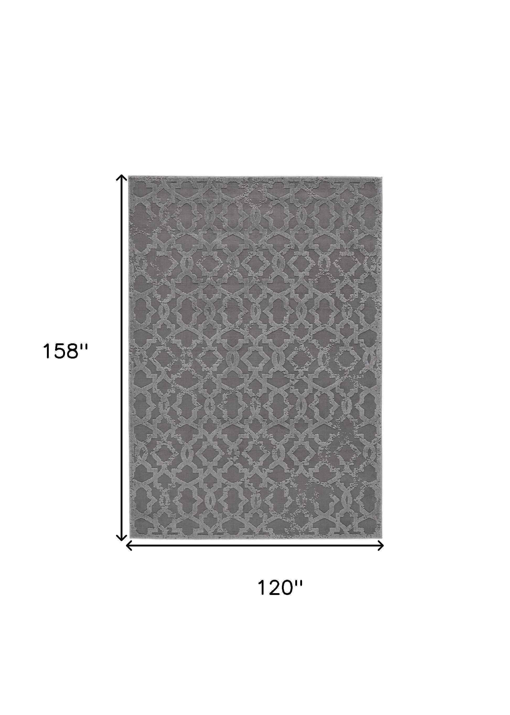 10' X 13' Gray and Silver Geometric Power Loom Worn Faded Area Rug