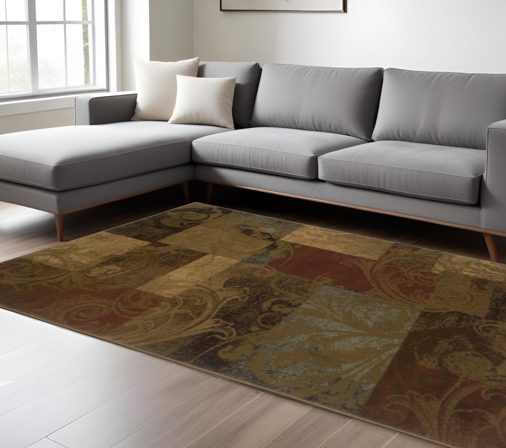 2' X 8' Green Geometric Power Loom Stain Resistant Runner Rug