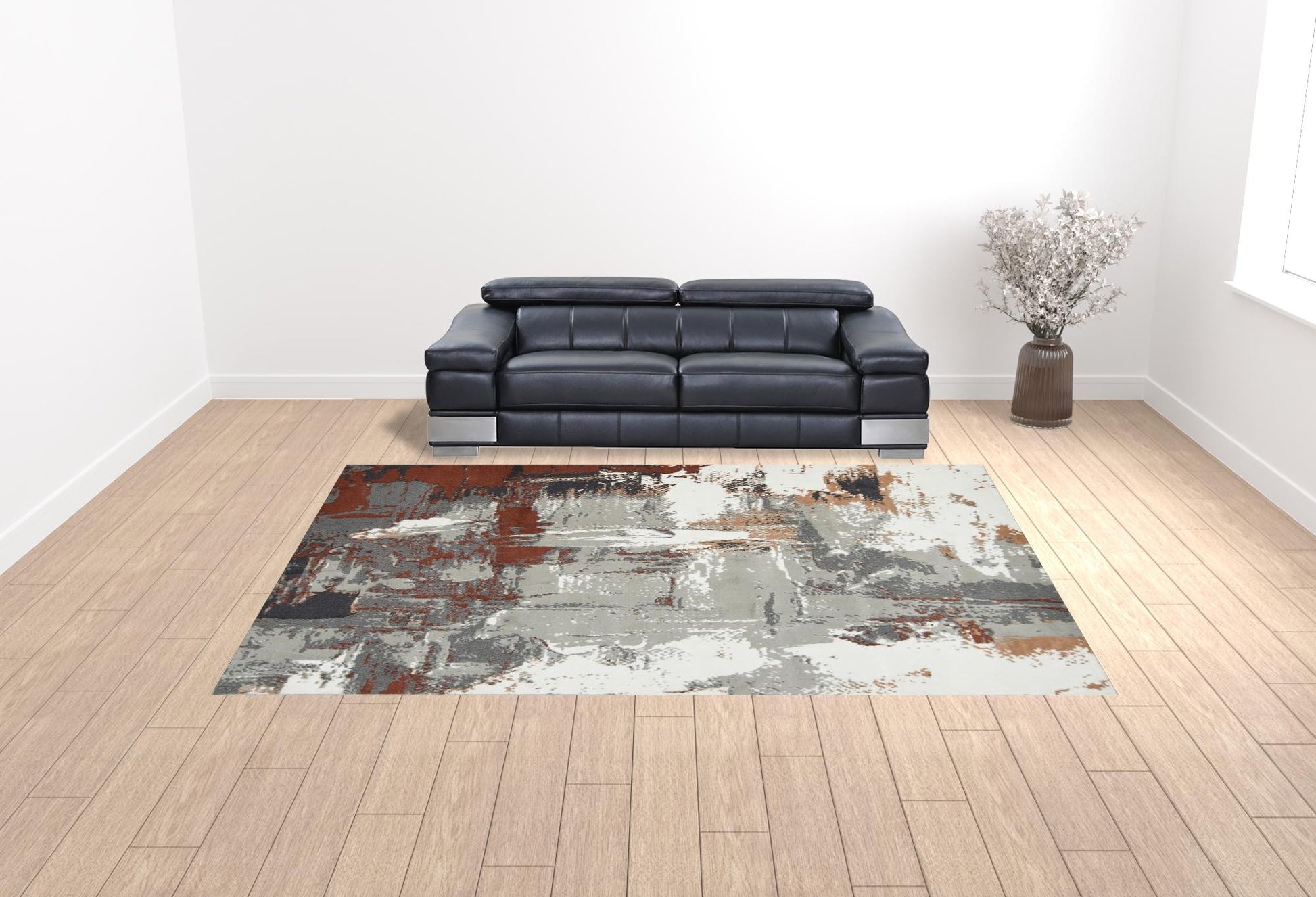 10' X 14' Ivory Gray and Rust Abstract Power Loom Area Rug