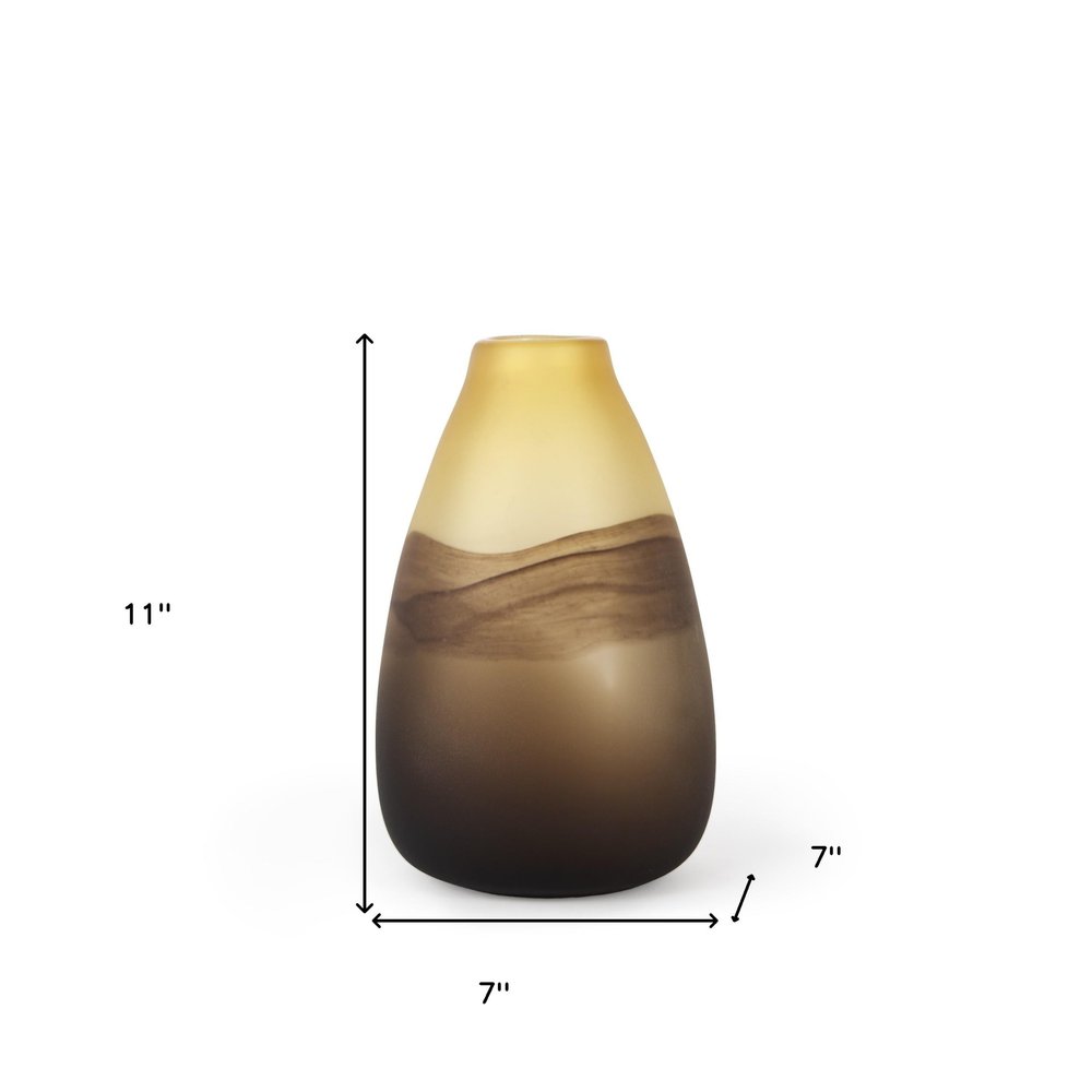 11" Yellow Abstract Cylinder Crystal Glass Table Vase