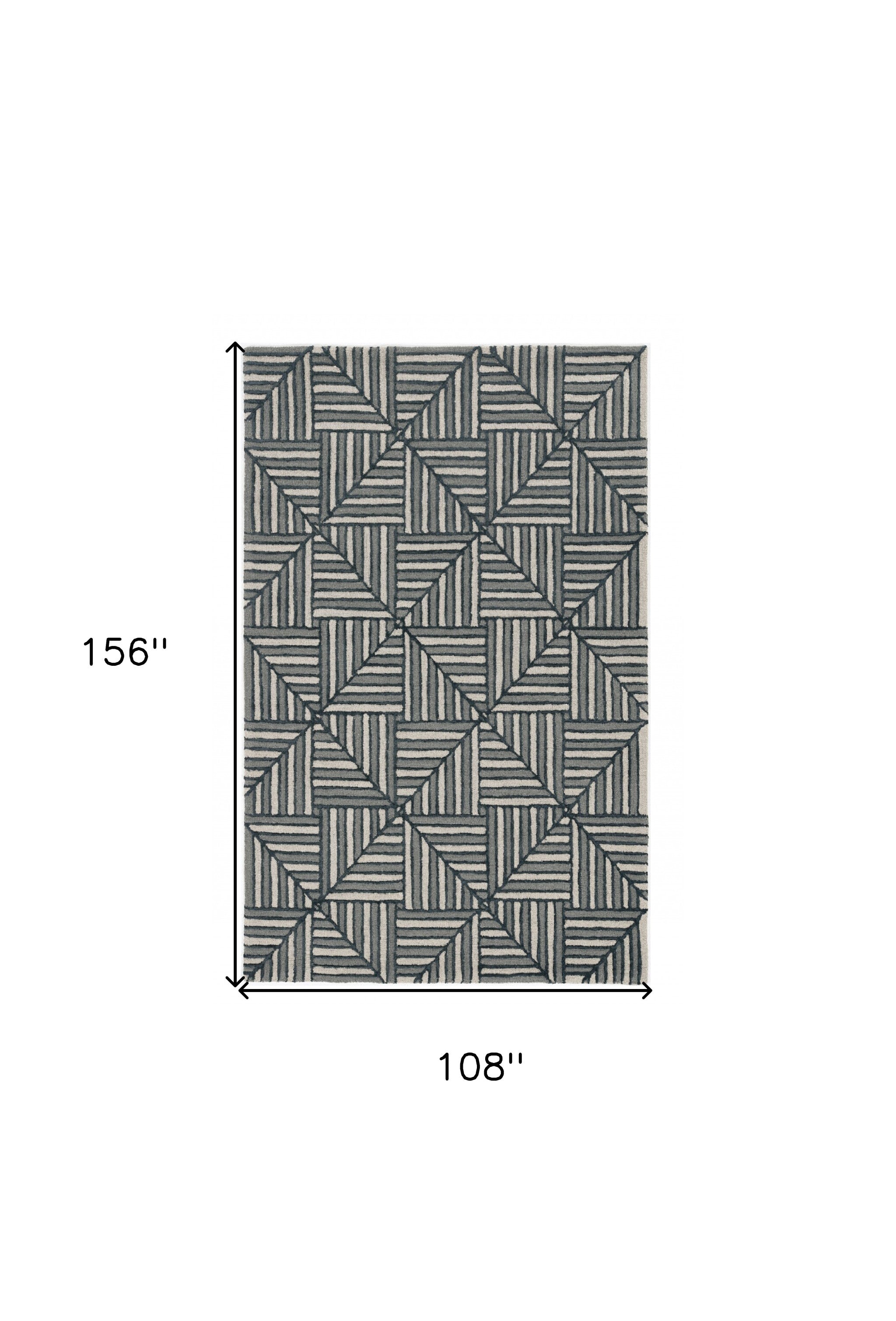 115' Beige and Charcoal Wool Geometric Hand Tufted Area Rug