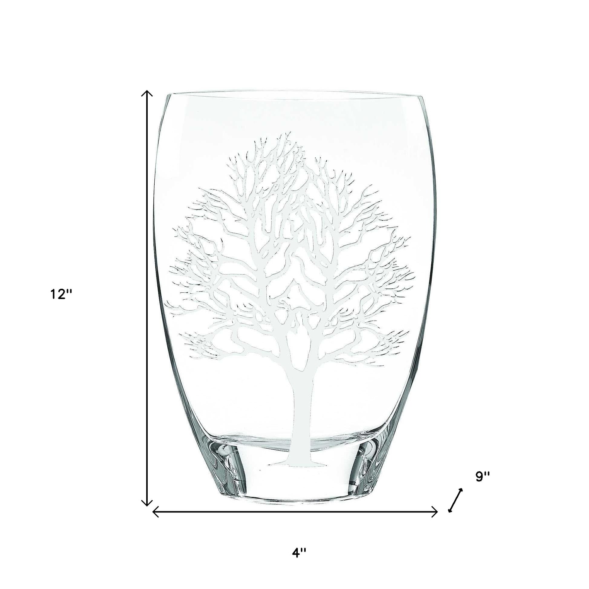 12 Mouth Blown Frosted Crystal European Made Tree Of Life Vase