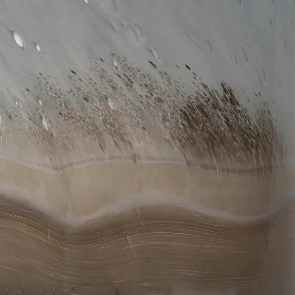Elevate your décor with this stunning 15-inch blue and beige abstract cylinder crystal glass table vase. Its modern style effortlessly adds a touch of sophistication to any space. The unique cylinder shape of this vase showcases a blend of blue and beige hues, creating a striking visual appeal. Crafted from high-quality crystal glass, this vase radiates elegance and refinement. Perfect for displaying fresh blooms or standing beautifully on its own, this table vase will be a standout piece in your home. Add a modern twist to your interior design with this exquisite vase that combines artistry with functionality seamlessly. 15-inch h x 8-inch w x 8-inch d.