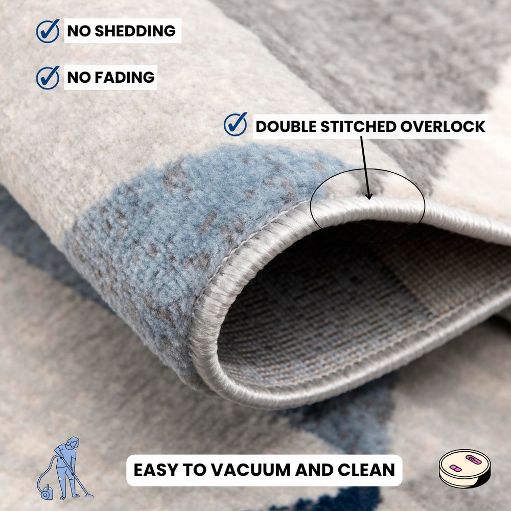 Showing off playfully textured patterns in vivid hues, this Navy Blue Geometric Diamond Runner Rug creates a perfect balance of style and sophistication to stand out in any modern living space. The skillful use of navy blue, ivory, and shades of gray to create two-toned diamond patterns in contrasting hues add up to a visually hypnotizing effect. The low pile construction offers a clean look with a smooth surface texture to experience a layer of luxury under your feet. Upholding the excellence of Turkish craftsmanship, this rug is made of 100% polypropylene that is inherently stain-resistant and easy to clean with enhanced durability to stand up to the elements of busy areas at home. The compelling look and classy color palette make this runner rug a worthy addition to spruce up your contemporary interior. 180” x 27” x 0.4”