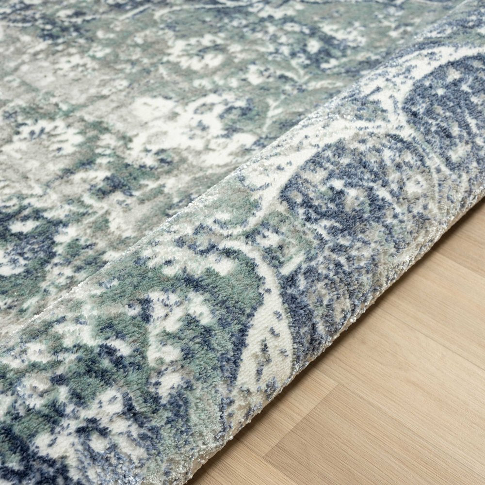 Add some artistry to your room with this 2-foot x 3-foot blue and ivory floral area rug. This rectangle shaped rug features a floral design in blue and ivory to give it visual interest. A classic shape marries with good looking design for your space area rugs help to give warmth and sense of home to your space. 26-inch H x 36-inch W x 0.39-inch D