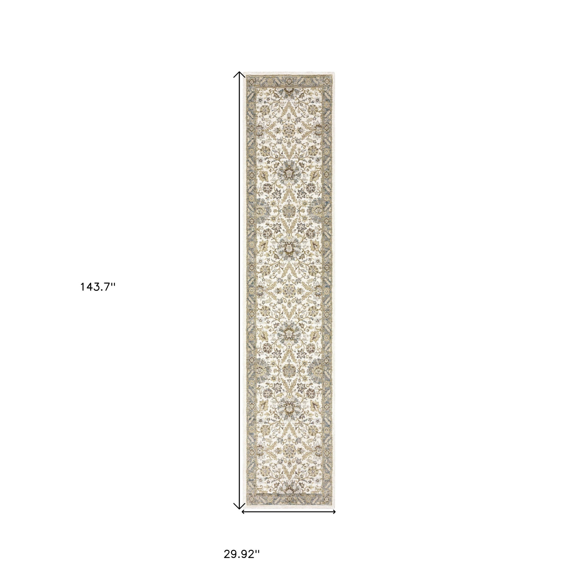 2' X 3' Gray and Ivory Oriental Power Loom Area Rug