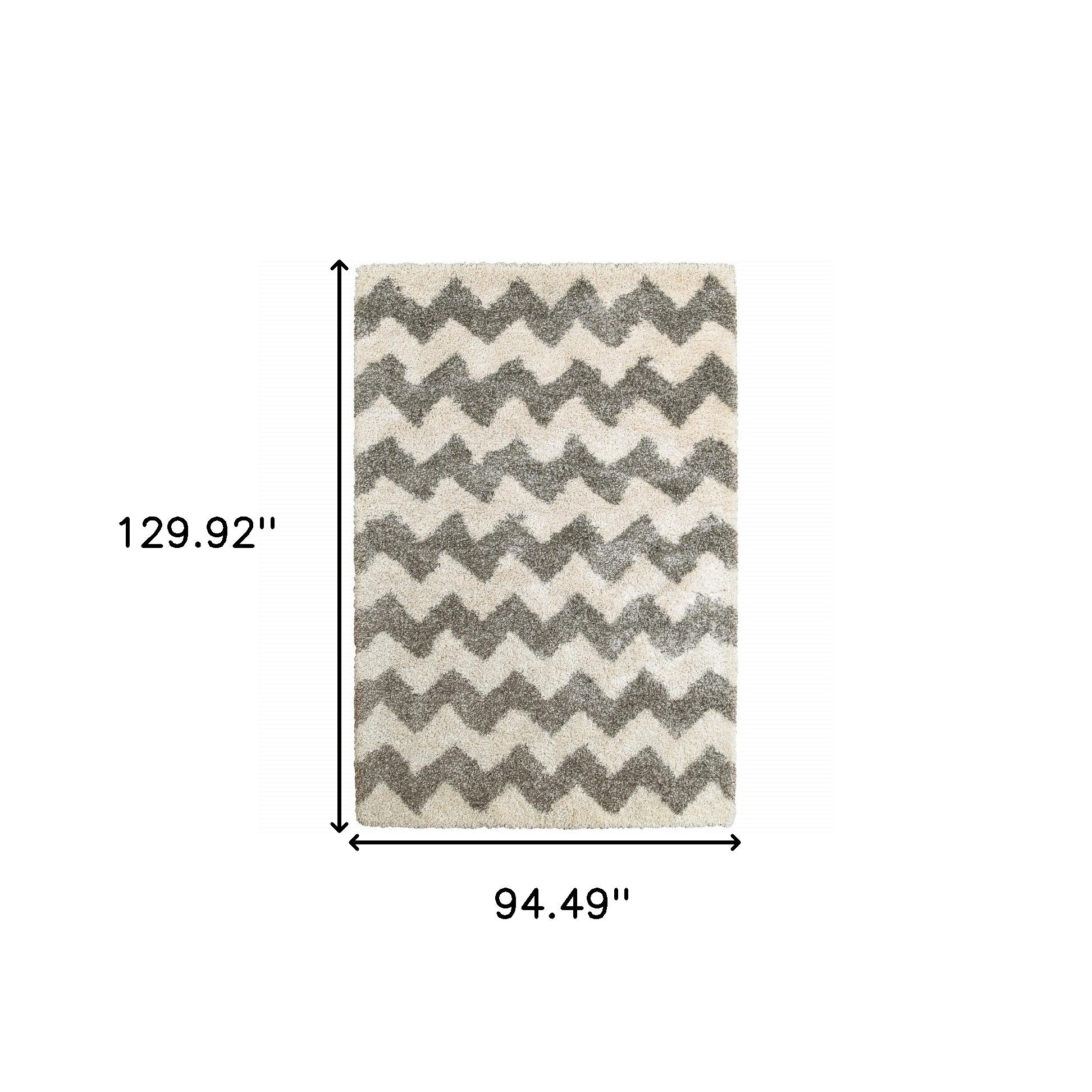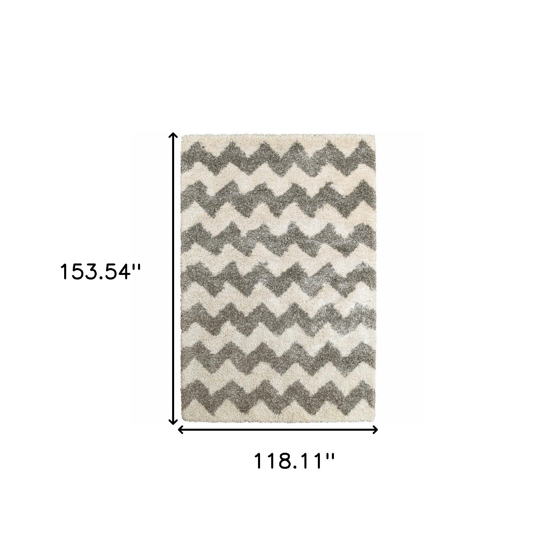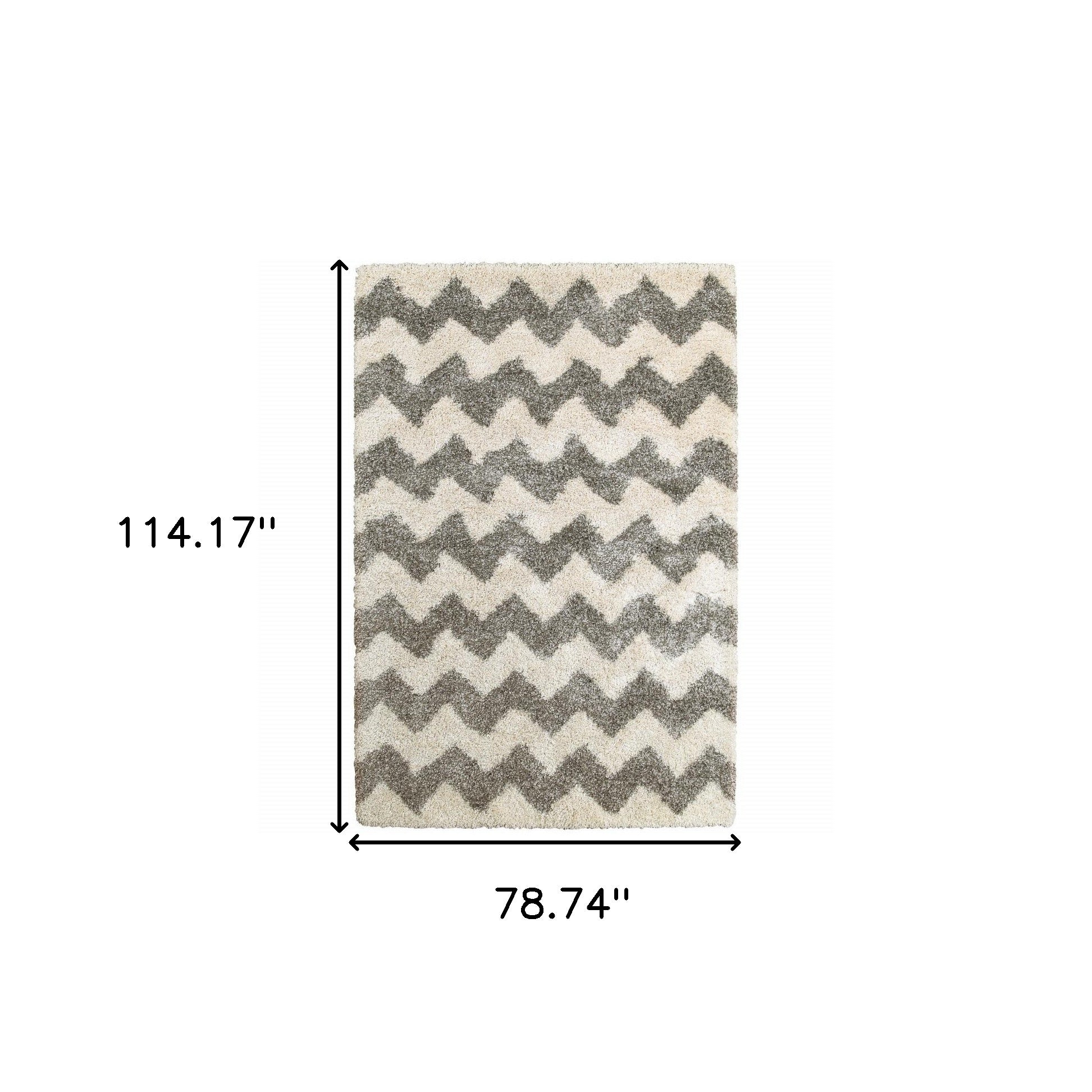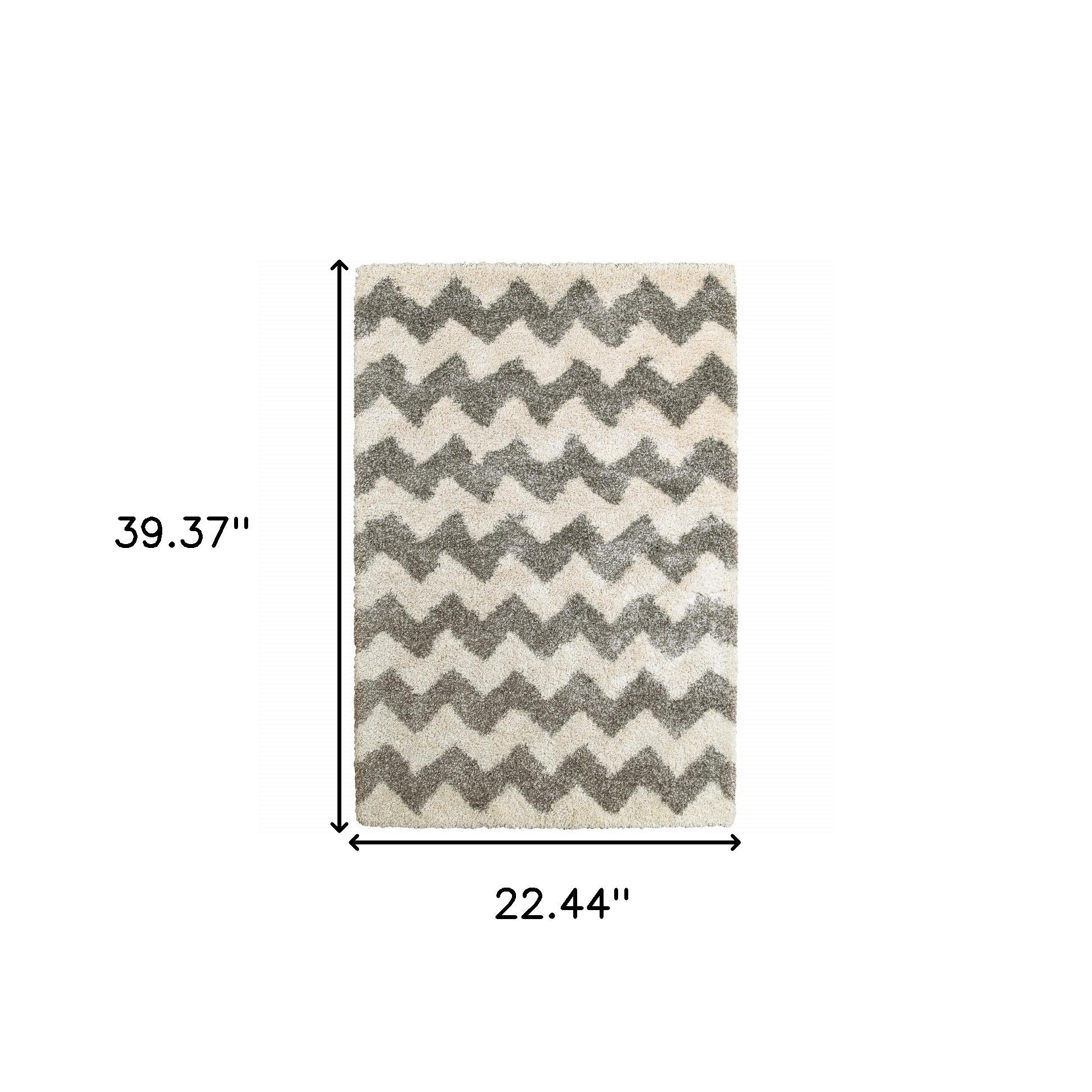 2' X 3' Grey And Ivory Geometric Shag Power Loom Stain Resistant Area Rug