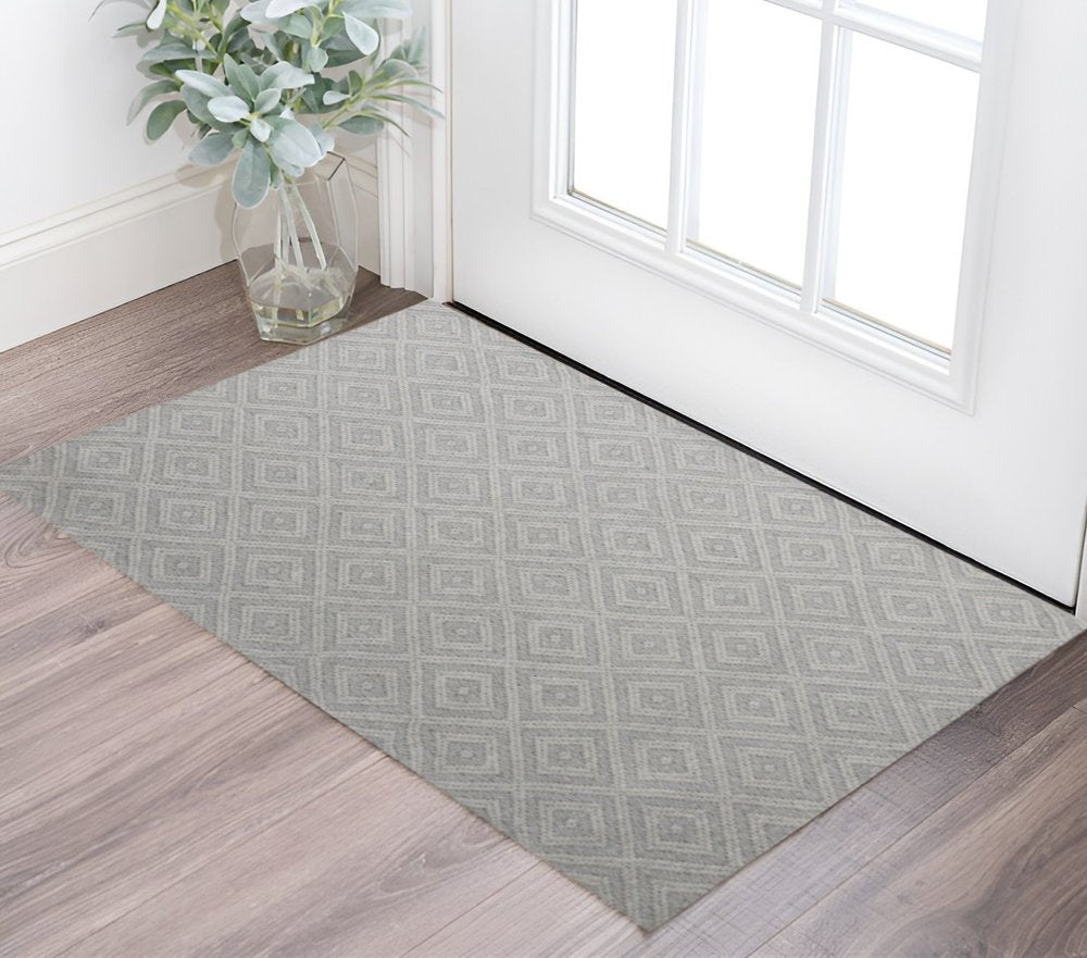 2' X 3' Ivory Wool Geometric Hand Woven Area Rug
