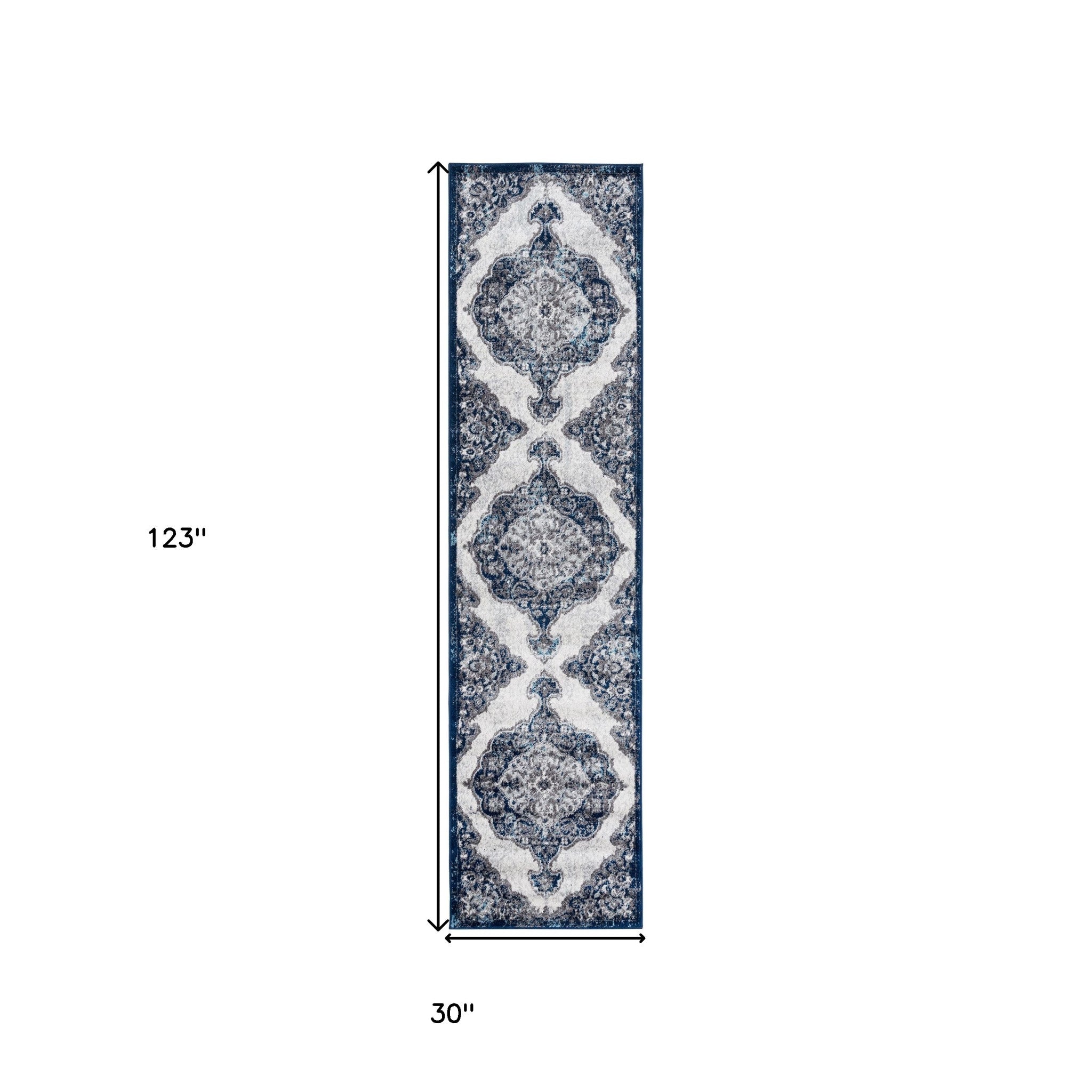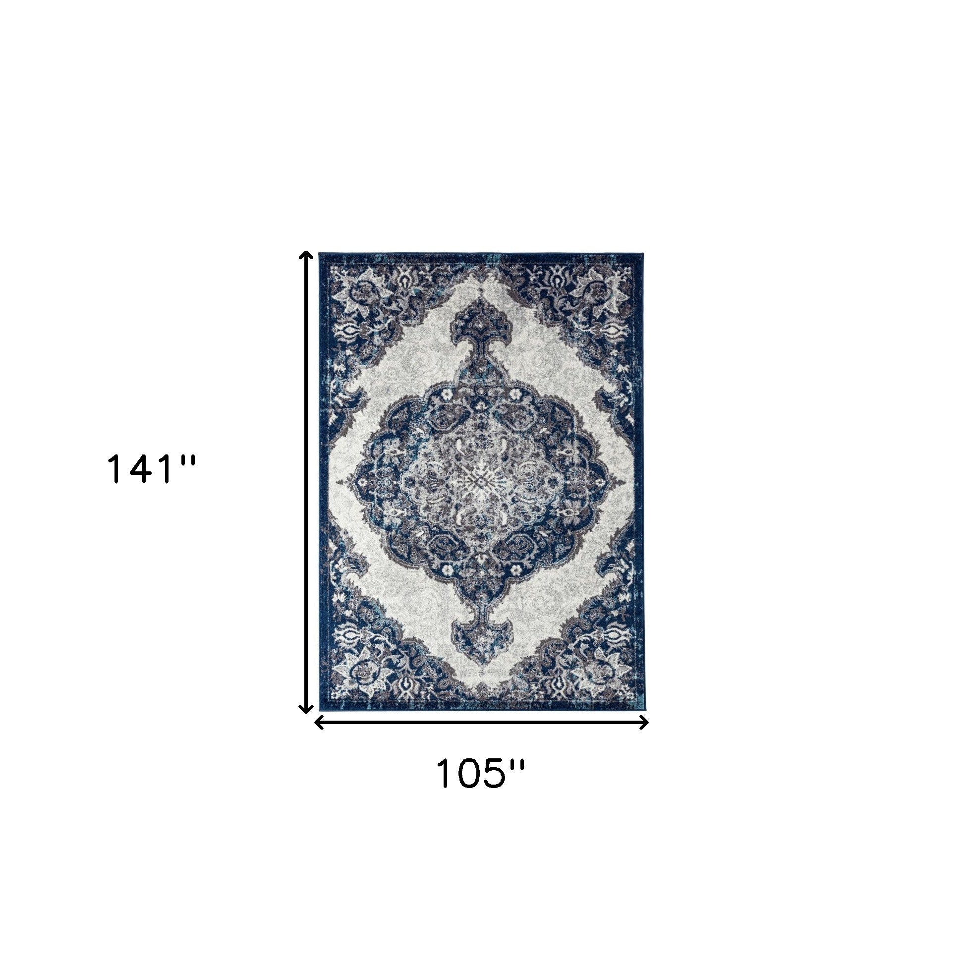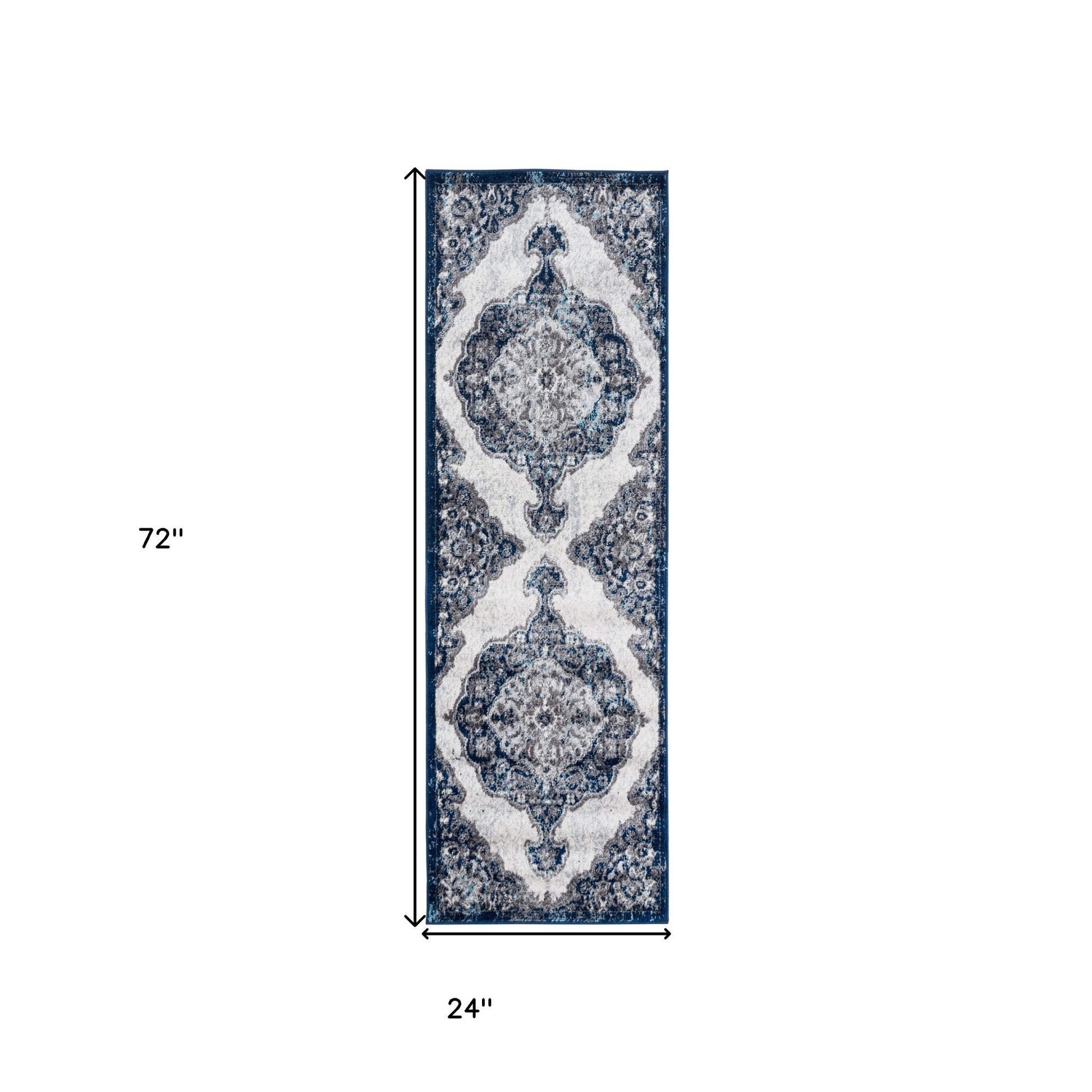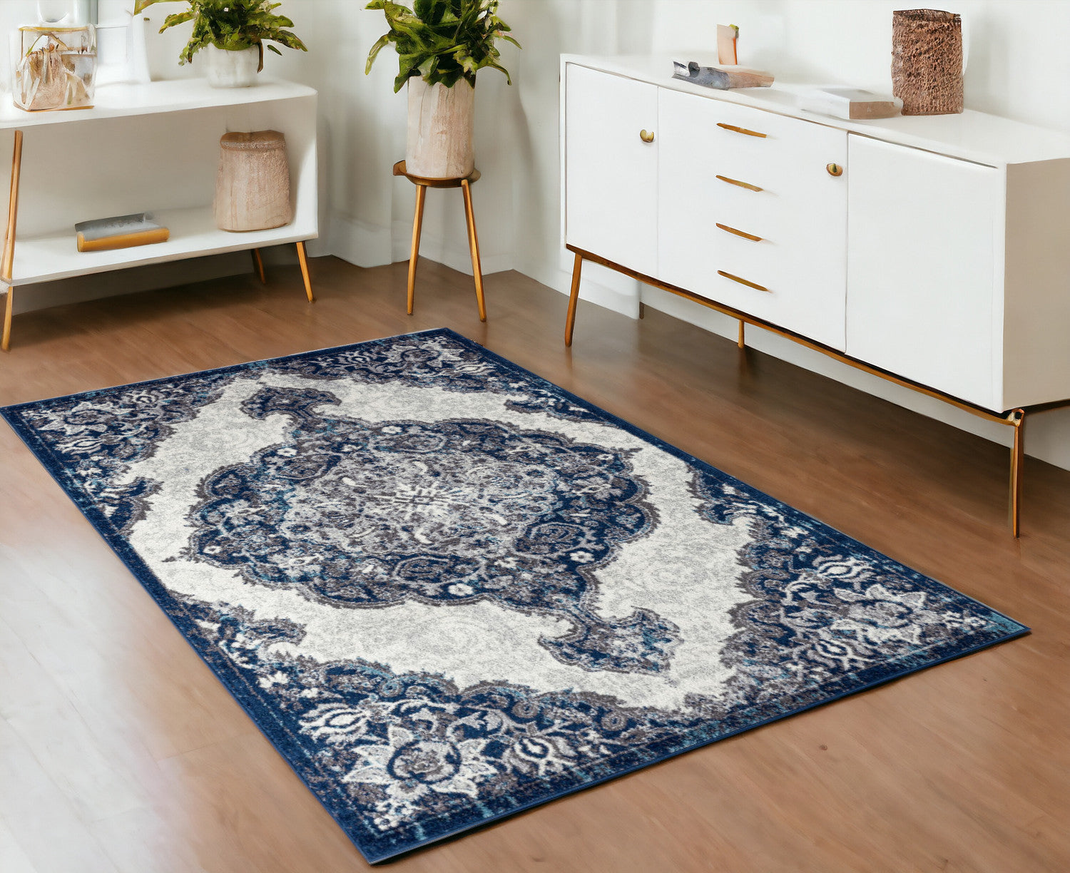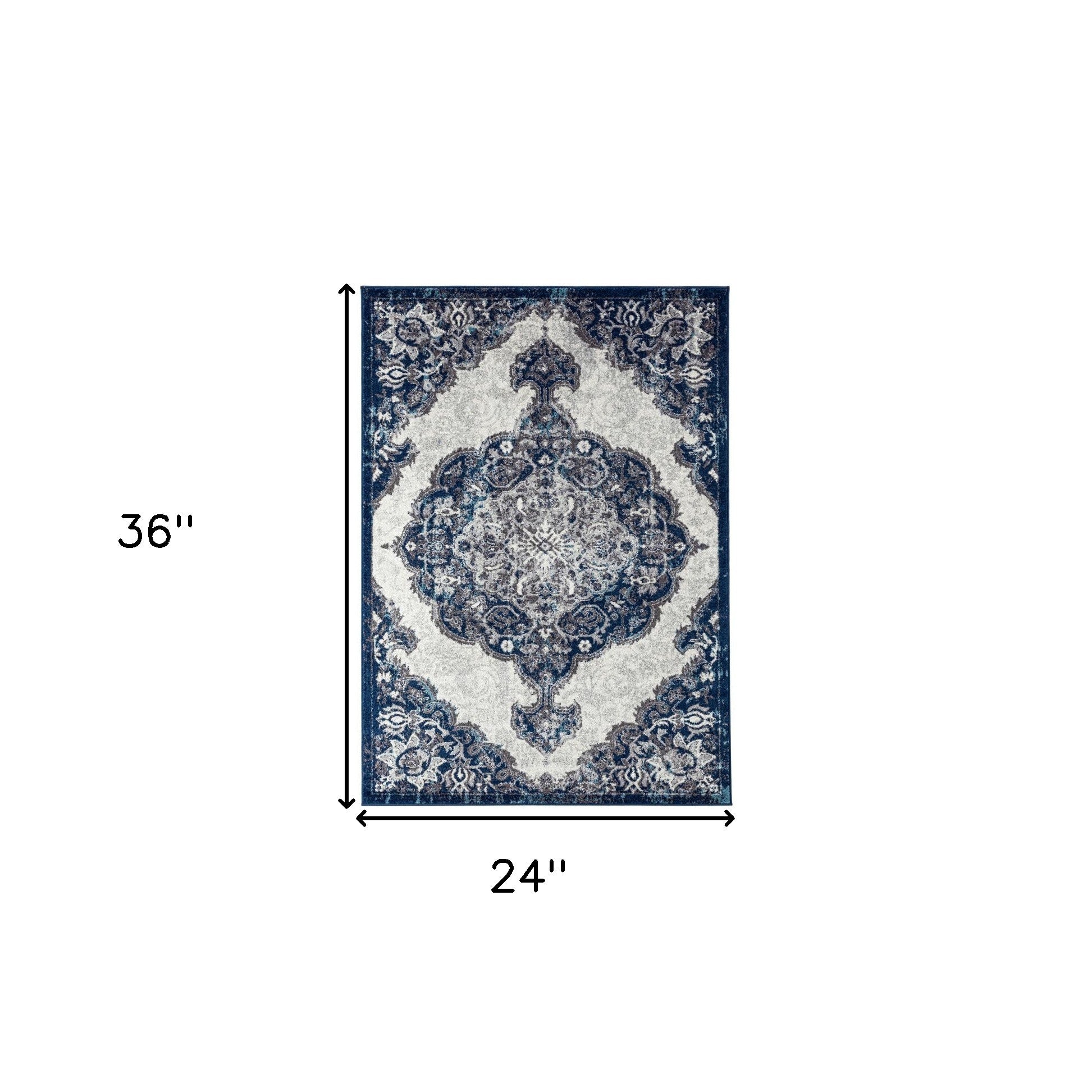2' X 3' Navy and Ivory Medallion Power Loom Area Rug