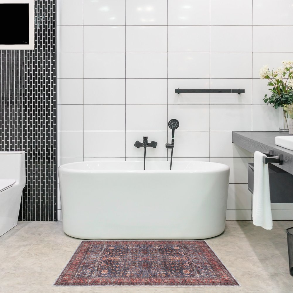 Add some artistry to your room with this 2-foot x 4-foot blue and red oriental power loom distressed washable non skid area rug. This rectangle shaped rug features a oriental design in blue and red to give it visual interest. A classic shape marries with good looking design for your space place this area rug against a hardwood or tile floor and it will enliven your living space with style and sophistication. 24-inch H x 45-inch W x 0.25-inch D