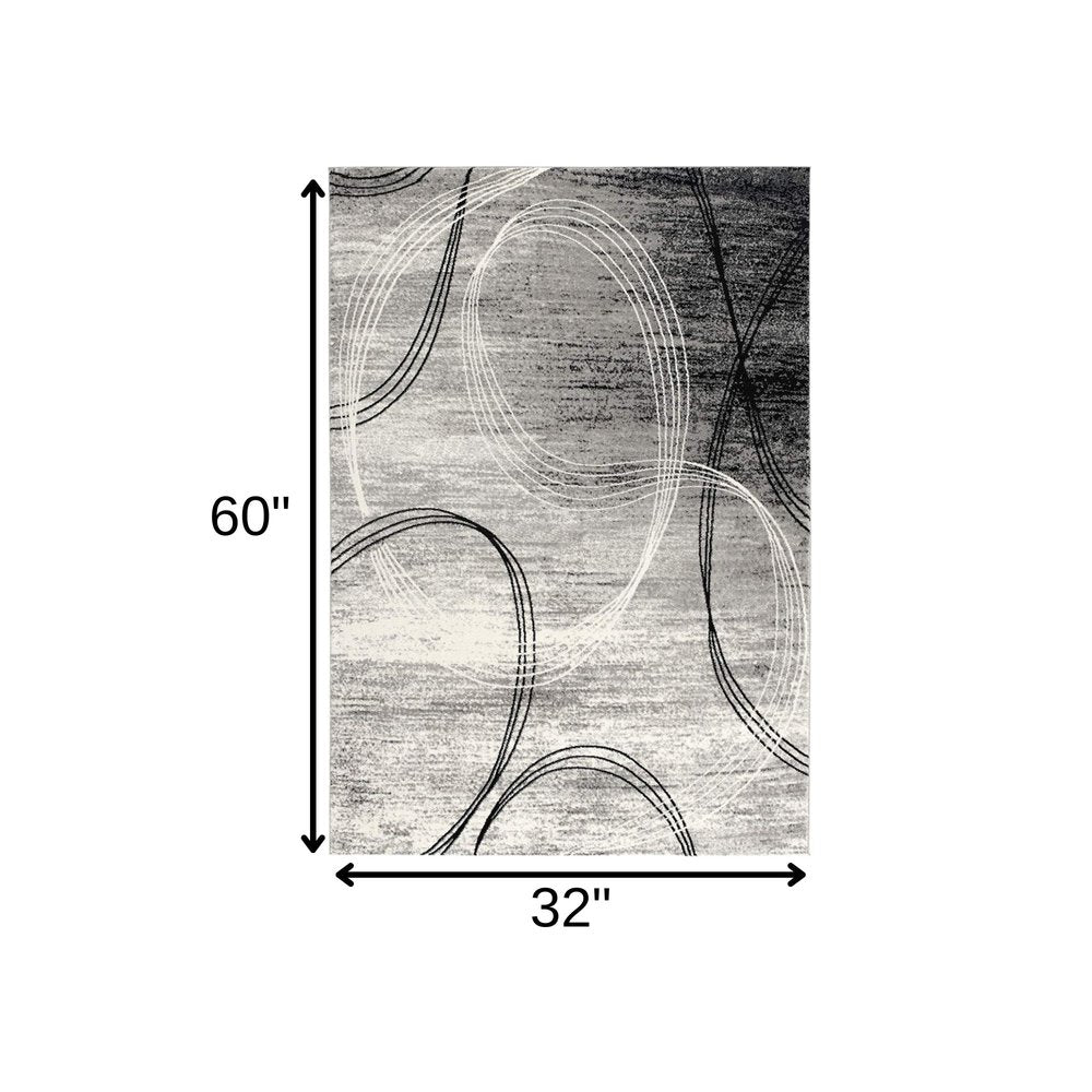 2' X 4' Gray Abstract Dhurrie Area Rug