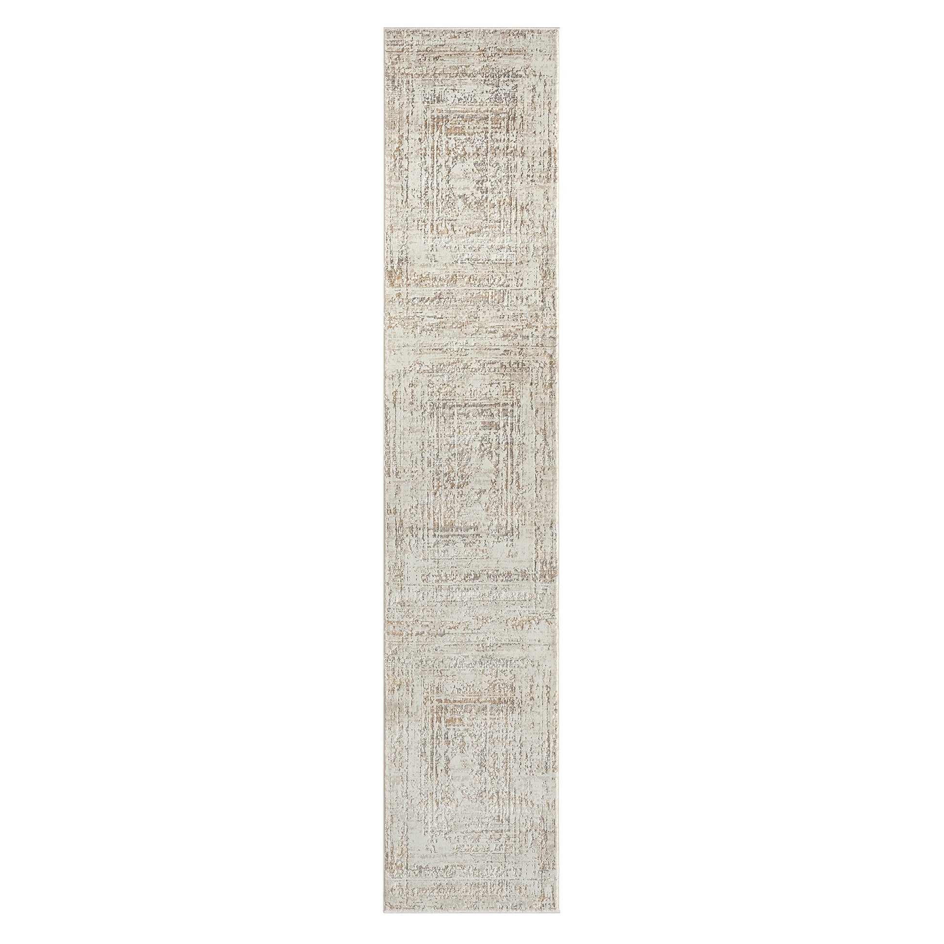 Add great coloration and comfortable texture to your space with this 2' x 8' beige abstract distressed runner rug. This runner shaped rug features a abstract design in beige to give it visual interest. A classic shape marries with good looking design for your space The coloring of this rug adds a delightfully neutral tone to your home and will easily match with most any decor. This superior Turkish rug represents the highest quality and is built to last. Place this area rug against a hardwood or tile floor and it will enliven your living space with style and sophistication. 0.35" H x 24" W x 96" D
