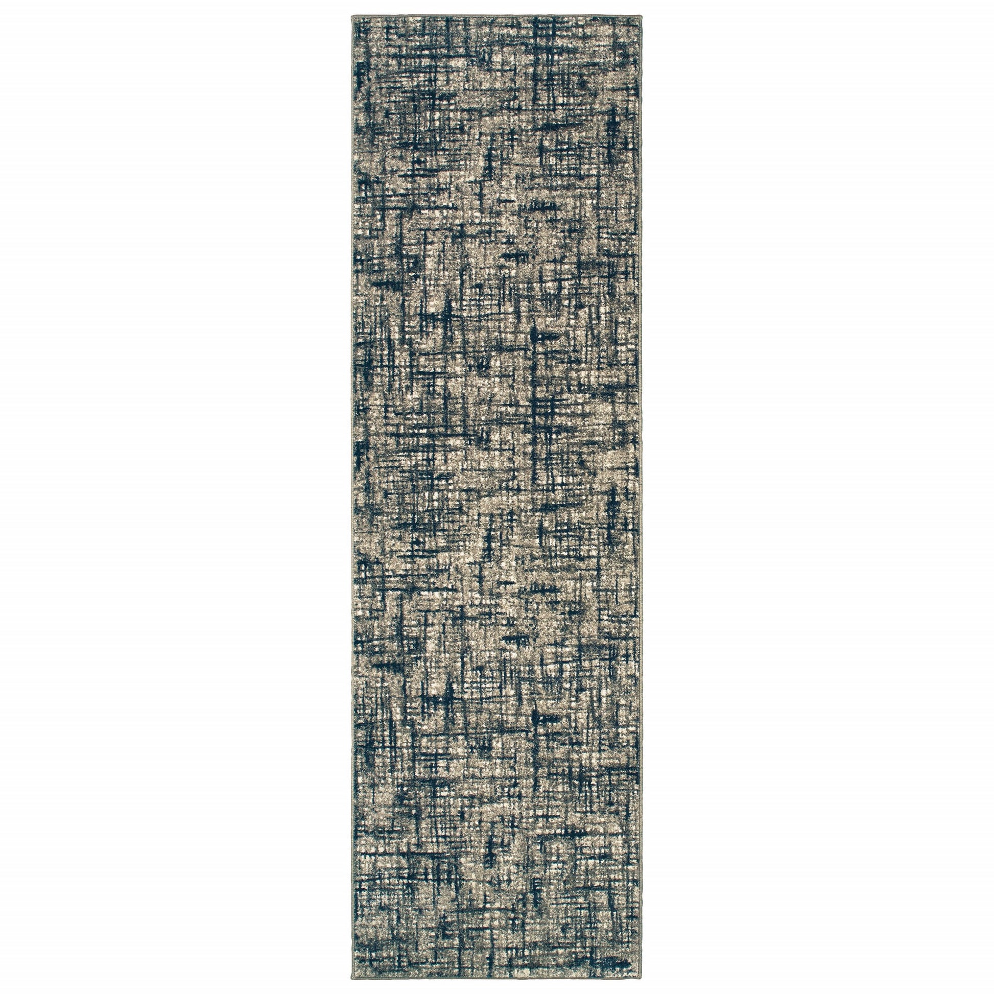 Anchor your living space with this sophisticated Gray and Navy Abstract Area Rug that carries a dimension of simplicity in its color contrast and abstract patterns to spruce up a Contemporary setting. The hues of gray creating an abstraction of distressed grids or chaotic strokes on a navy blue canvas to uphold a vintage vibe with a modern impression. Showcasing a machine-woven silky soft polypropylene surface for easy care and durability while resisting stains is its inherent property. Perfect for indoor areas, the rug features a low pile construction that adds to its surface texture for a plush feel under the feet. This cool-toned area rug would be an impeccable addition to any place for a sleek and stylish look without being too loud. 0.32” x 62.99” x 90.55”