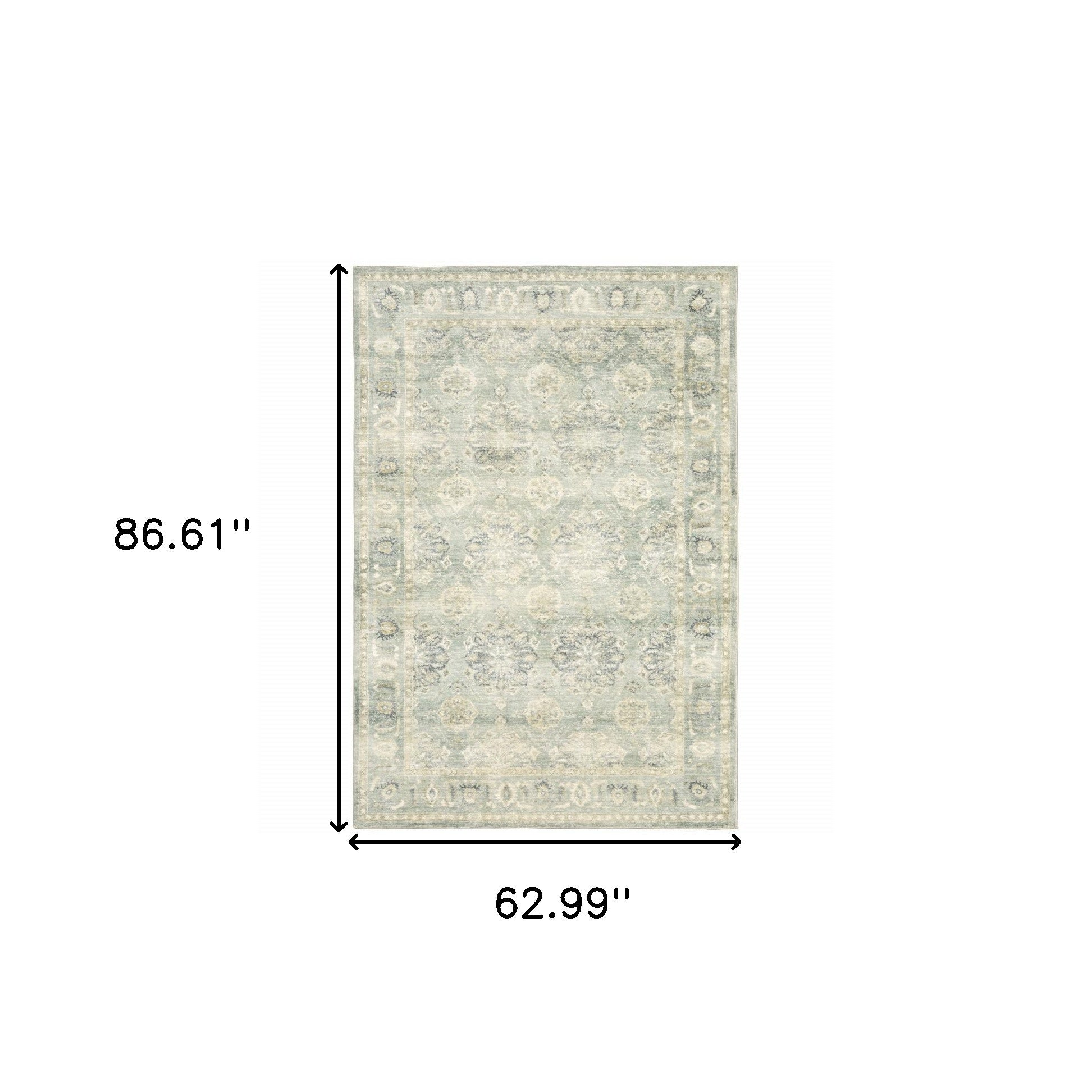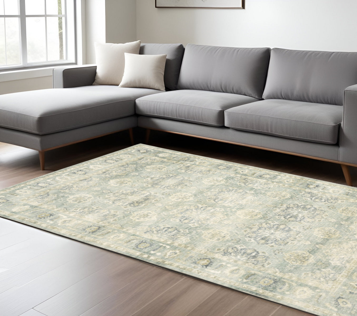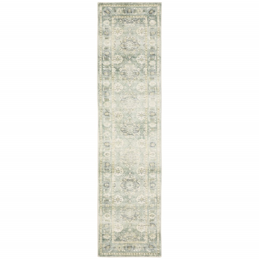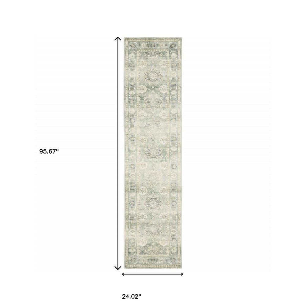 2' X 8' Green And Ivory Oriental Power Loom Stain Resistant Runner Rug