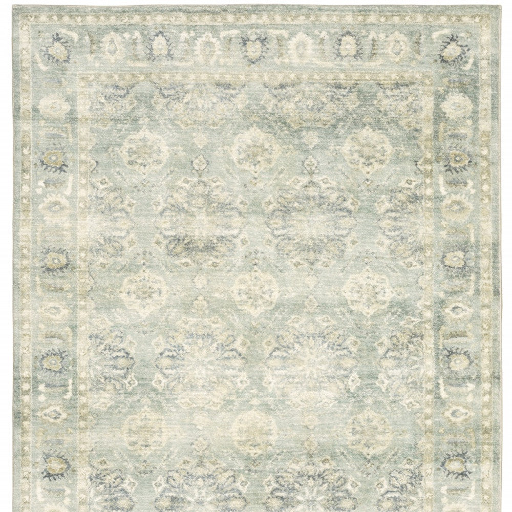 Add great coloration and comfortable texture to your space with this 2' x 8' green and ivory oriental power loom stain resistant runner rug. This runner shaped rug features a oriental design in green and ivory to give it visual interest. A classic shape marries with good looking design for your space Ideal for spaces with kids and pets, this rug is stain resistant to help repel stains and spilled liquids. Area Rugs help to give warmth and sense of home to your space. 0.39" H x 24.02" W x 95.67" D