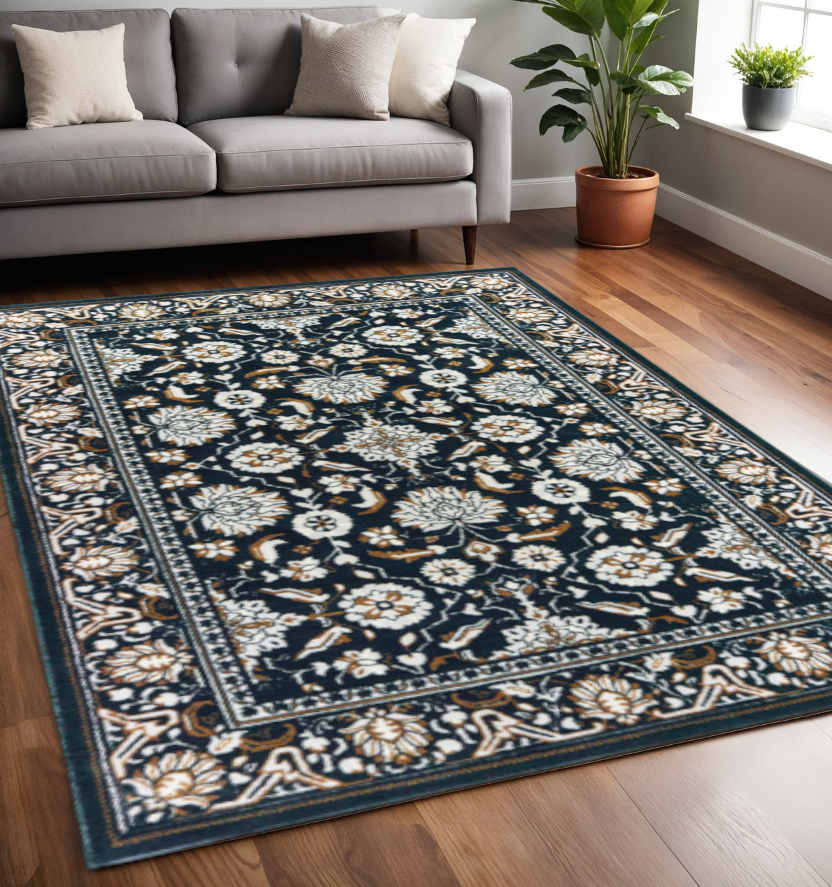 Add great coloration and comfortable texture to your space with this 2' x 8' navy caramel and ivory oriental power loom stain resistant runner rug. This runner shaped rug features a oriental design in navy caramel and ivory to give it visual interest. A classic shape marries with good looking design for your space Ideal for spaces with kids and pets, this rug is stain resistant to help repel stains and spilled liquids. Area Rugs help to give warmth and sense of home to your space. 0.39" H x 26.77" W x 90.55" D