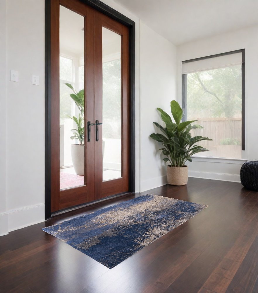 3' X 5' Blue and Gray Abstract Non Skid Area Rug