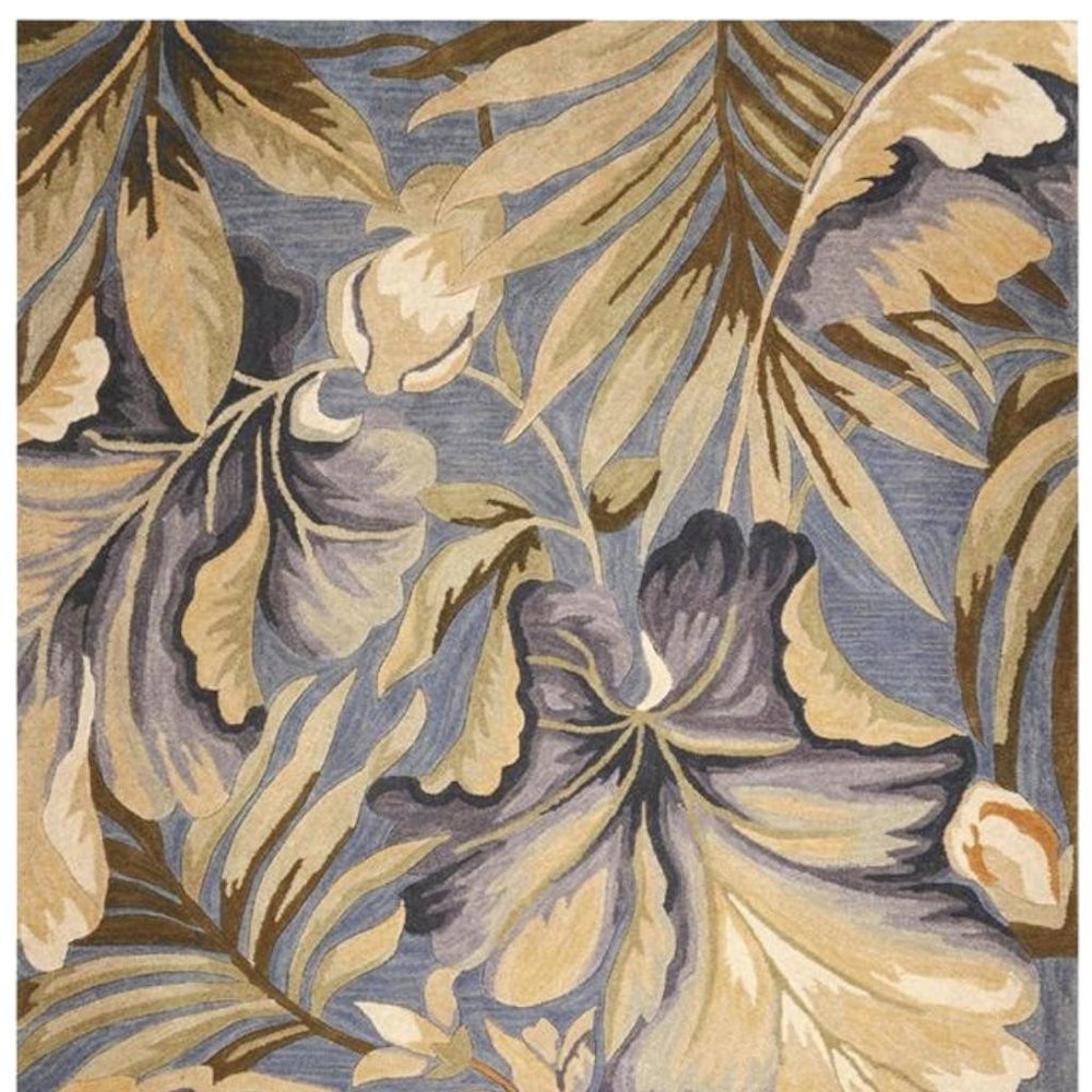 Add great coloration and comfortable texture to your space with this 6-foot blue beige and green wool tropical botanical hand tufted round rug. Crafted by skilled artisans, this hand tufted rug is genuine and unique. No two will be exactly alike. Rugs are a great way to showcase your style, hide imperfections, warm your home and reduce noise. This larger sized, contemporary styled rug is ready to create a focal point or statement piece in your room. 66-inch h x 66-inch w x 0.5-inch d.