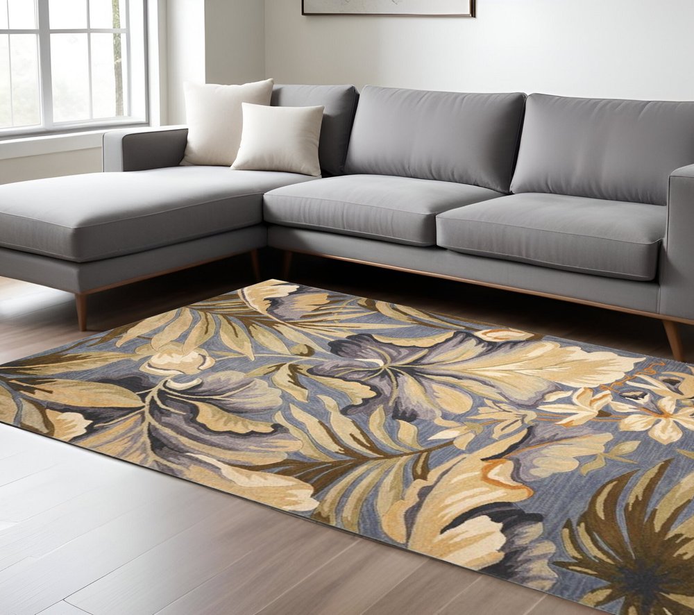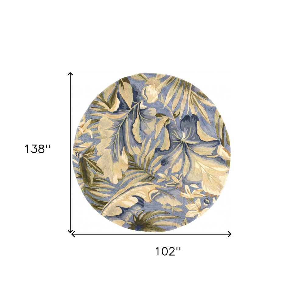 6' Blue Beige And Green Wool Tropical Botanical Hand Tufted Round Rug