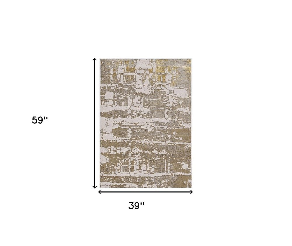 8' X 11' Ivory Taupe And Gold Abstract Area Rug