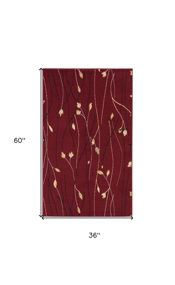 3' X 5' Red Black and Ivory Floral Vines Power Loom Area Rug