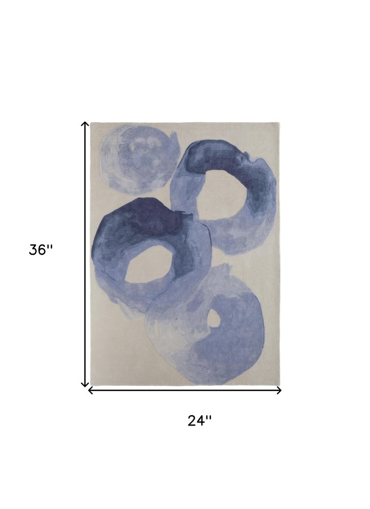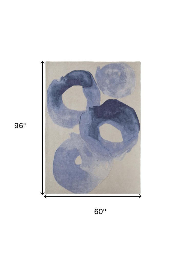 4' X 6' Blue and Ivory Abstract Hand Tufted Area Rug