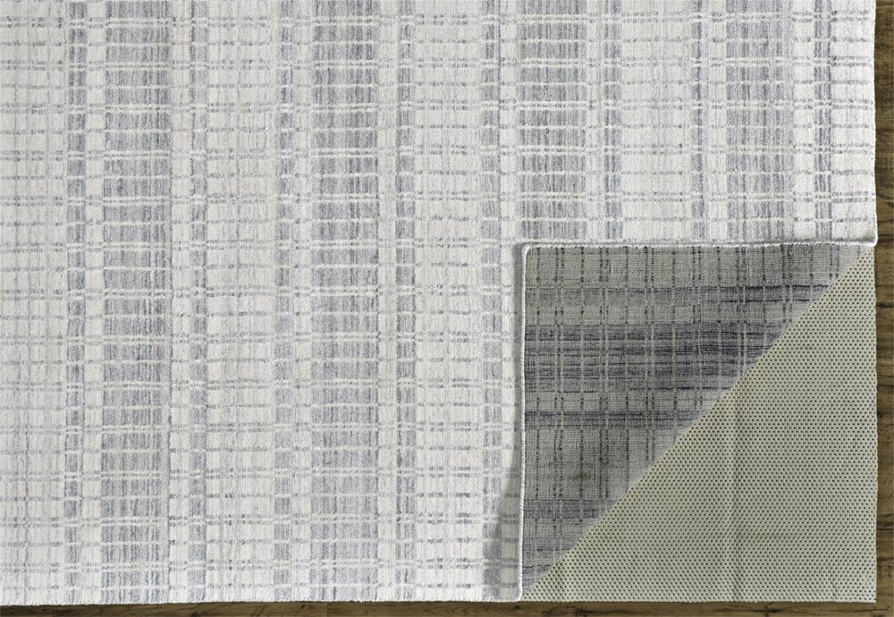Add some artistry to your room with this 7' x 9' ivory and blue striped hand woven area rug. This rectangle shaped rug features a striped design in ivory and blue to give it visual interest. A classic shape marries with good looking design for your space Crafted by skilled artisans, this hand woven rug is genuine and unique. No two will be exactly alike. Place this area rug against a hardwood or tile floor and it will enliven your living space with style and sophistication. 0.37" H x 87" W x 111" D