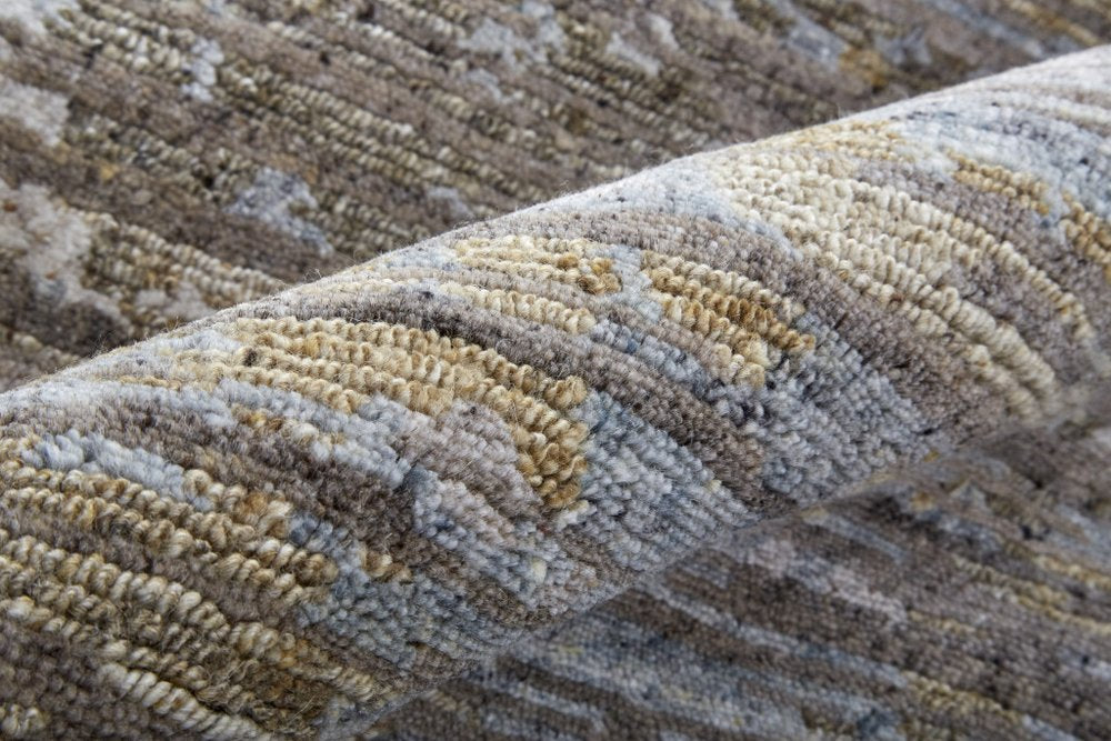 Add great coloration and comfortable texture to your space with this 8' x 10' brown and gray wool abstract hand knotted area rug. This rectangle shaped rug features a abstract design in brown and gray to give it visual interest. A classic shape marries with good looking design for your space Crafted by skilled artisans, this hand knotted rug is genuine and unique. No two will be exactly alike. Place this area rug against a hardwood or tile floor and it will enliven your living space with style and sophistication. 0.39" H x 93" W x 117" D