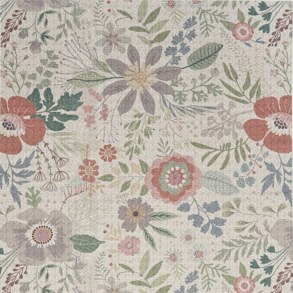4' X 6' Gray and Pink Floral Power Loom Washable Non Skid Area Rug